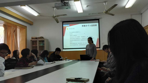 参加本次答辩的共有24位入党积极分子。各位积极分子结合党的先进性从对党的认识、入党动机、自己的学习与工作生活和自己的优缺点等方面进行了阐述。在答辩中,有同学讲到自己对党的认识来源于身边优秀的党员,来源于那句全心全意为人民服务,自己也想成为这样的人;有同学讲到自己十分渴望加入这样一个优秀的组织,通过集体的力量更好地服务同学、服务社会;也有大三的同学谈到自己的学习与工作,讲到自己虽然大一时没有处理好学习与工作的关系,成绩不够理想,但近三年来一直在努力和进步,并讲明了自己本学期的目标;更有同学坦诚地指出了自己的缺点,并给出了改正缺点的方法,说到自己会更加努力,以一个优秀党员的标准严格要求自己。各位积极分子均结合PPT的展示,从思想、学习、工作等方面进行了全面系统的介绍。