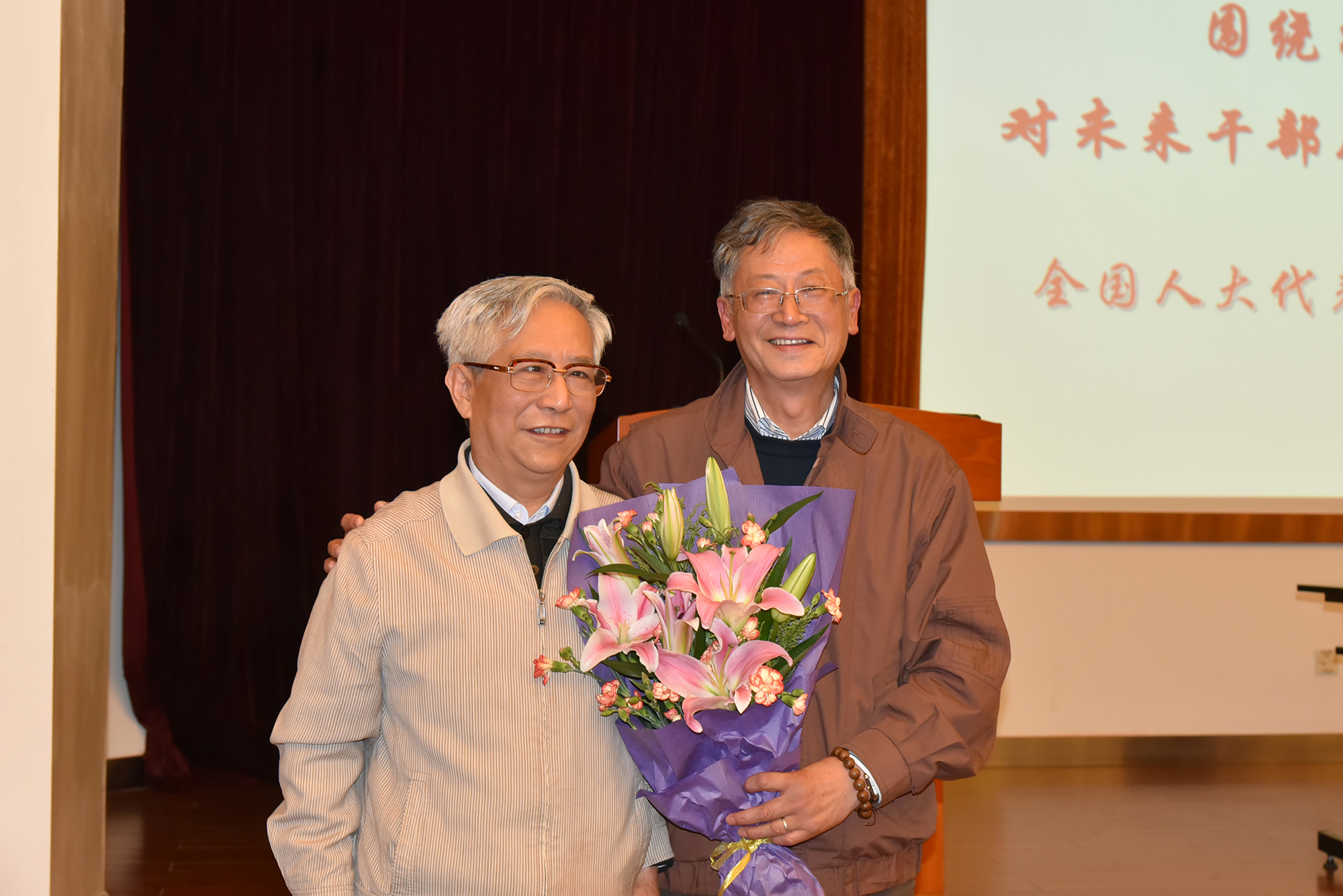 讲座上,严诚忠教授还从一个党外人士的角度,对党员干部的修养与培养发表了自己的解读,对在座的学生党员提出了殷切的希望与告诫。他指出:一个人尤其在参与了党组织之后,作为执政党的成员,他的修养决定了其所在执政党的形象,也决定了该执政党的执政效果,他的所作所为不该违背老百姓对其的拥护支持。因此,共产党干部的修养应该更加提高。那么怎么来提升干部的个人修养呢?严诚忠教授又指出,首先就要提高其自身的素质。素质,即指一个人驾驭人生和享受生活的能力。联合国教科文组织主张,教育的本质应该在四个方面:学会做人、学会做事、学会与人共处、学会与人共赢。因此,严诚忠教授深刻地认识到,在这一点上,共产党面临新的机遇和挑战,对共产党干部的要求也越来越高。在2014年底进行全国人大代表培训时,党中央便强调在三个全面基础上所增补的第四个全面——“全面从严治党”。这便是为什么反腐败不是打一阵子老虎便松懈。反腐败、惩治腐败,立足改进,始终是保持着一种进步性。因此在本届党中央领导下,大家都更加重视共产党的干部建设,反对以权谋私。严诚忠教授表示,学生党员以后都有可能成为共产党的重要干部,他作为一个党外人士,衷心的希望在座的各位可以注重提升自己、提升自己的修养。