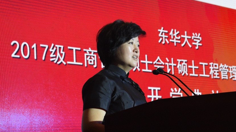 随后,副校长刘春红致辞。她作为东华大学MBA教育的主要创始人,为MBA教育开展奠定了坚实基础,在东华MBA创立20周年的特别日子,代表学校欢迎全体新生入学。刘校长介绍了东华大学的建校历史、教育理念和科研成就,回顾了包括MBA在内的各个专业学位项目的发展历程。她借用乔布斯的“stay hungry,stay foolish”鼓励同学满怀热情,希望同学们在东华实现三大目标:专业知识的学习、思维模式的转变、人际网络的建立。“做好规划、管好时间、练好身体”,才能最终“有所学、有所悟、有所得”,成为心系民族社会福祉的优秀管理者,让人生和事业的道路越走越远,让母校引以为荣。
