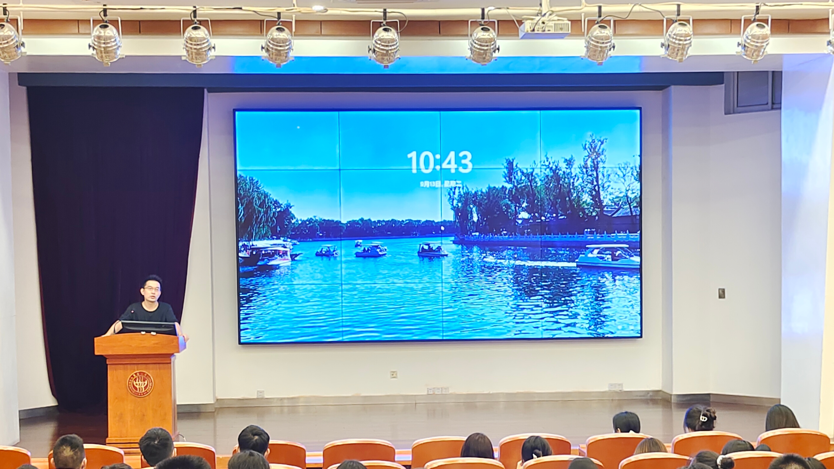 研究生教务员何帅就研究生选课、三助、获得科研成果的基本要求进行说明。何帅希望全体新生入学后应提早规划好科研和学习生活,摆正心态,自主学习,与导师、同学积极交流。