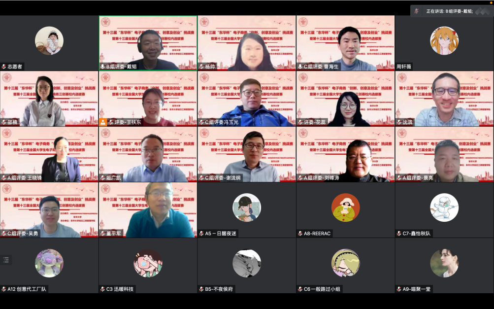 4月15日上午,第十三届“东华杯”电子商务三创赛暨全国大学生电子商务三创赛东华大学校内选拔赛采用线上会议的形式开展,东华大学彩民之家 副院长杨帅教授致开幕欢迎词并宣读比赛评分标准,邀请到评委教师和参赛学生团队等共同参与,大赛由戴韬老师主持。