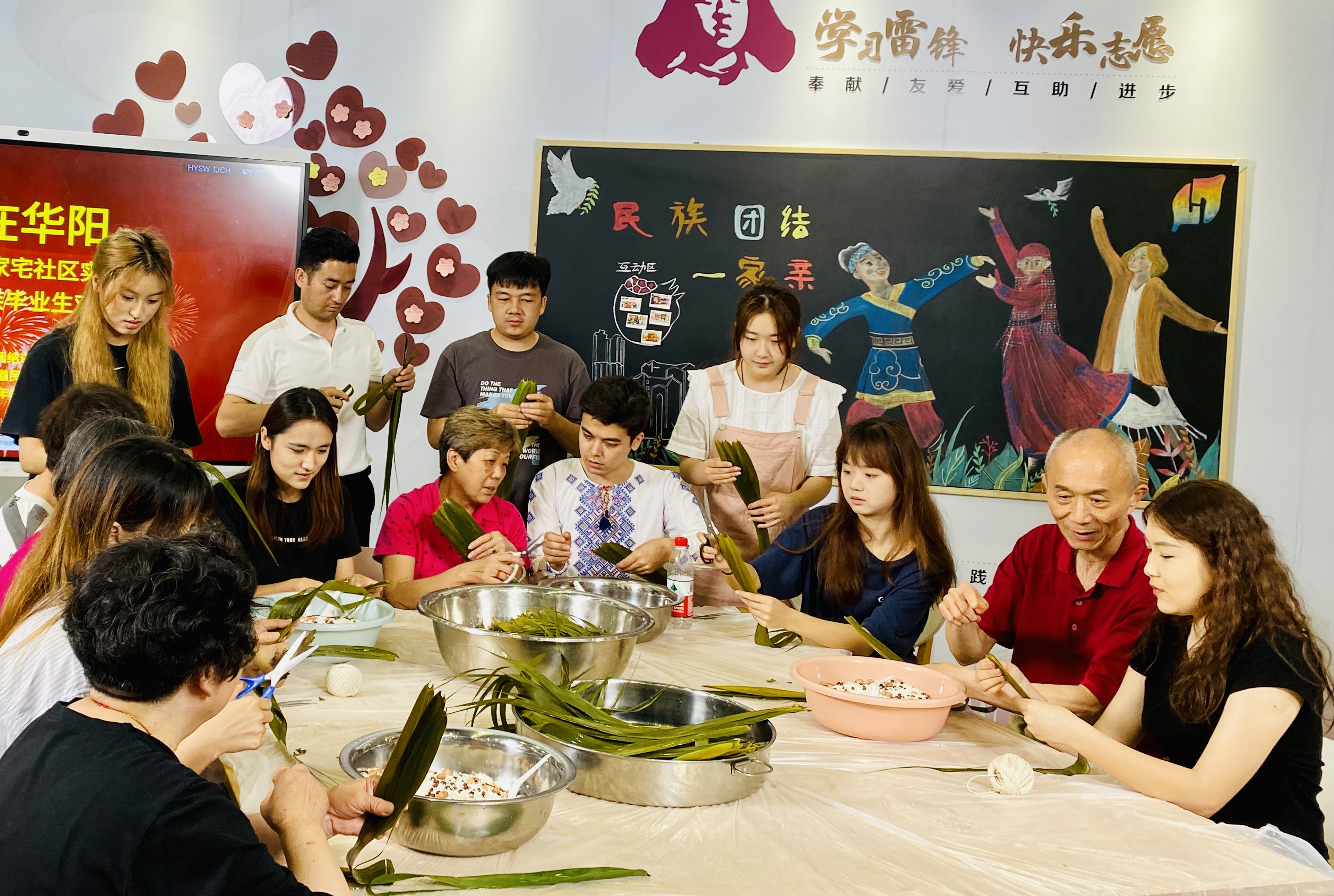 6月13东华大学-华阳路街道民族团结进步教育基地充满了各民族师生和居民的欢声笑语。临近端午节又恰逢毕业季,彩民之家 少数民族学生前往华阳路街道,与街道干部和居民一起学习民族宗教法律政策,学习包粽子,毕业生街道干部居民互送礼物,充分发挥“基地”作用,有形有感有效开展民族团结进步教育。