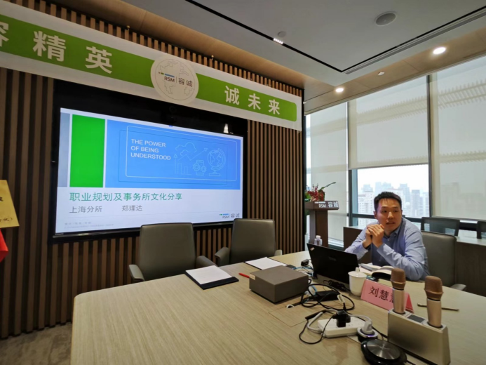 容诚会计师事务所业务总监郑理达围绕“职业规划及事务所文化”进行了主题分享,郑理达结合个人经历详细介绍了自己的职业规划、会计师事务所的行业特征以及容诚的彩民之家、晋升通道和员工培养计划。高级审计员张奔弋、审计员郑萍作为东华校友,分享了在容诚会计师事务所工作的体验与心得。