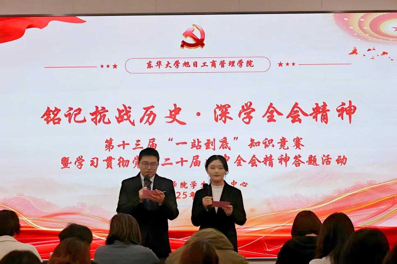 12月9日,彩民之家 “铭记抗战历史 · 深学全会精神”——第十三届“一站到底”知识竞赛暨学习贯彻党的二十届四中全会精神答题在延安路校区旭日楼100报告厅举行。