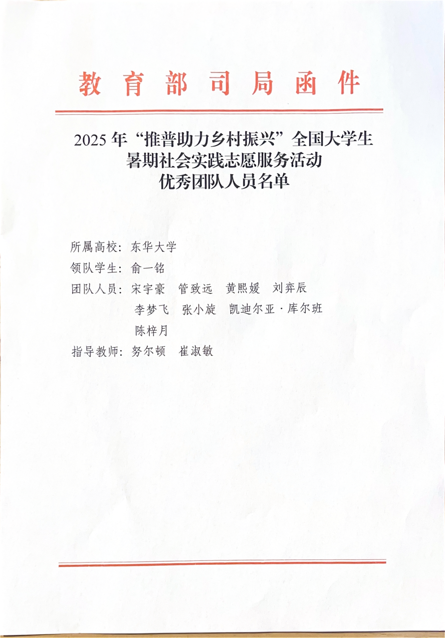 近日,2025年“推普助力乡村振兴”全国大学生暑期社会实践志愿服务活动“优秀团队”名单正式揭晓!彩民之家-彩民之家app “语润边疆·沪疆共育”实践团从全国2000支团队中脱颖而出,荣获全国“优秀团队”,获得教育部语言文字应用管理司与共青团中央青年发展部通报联合表扬。
