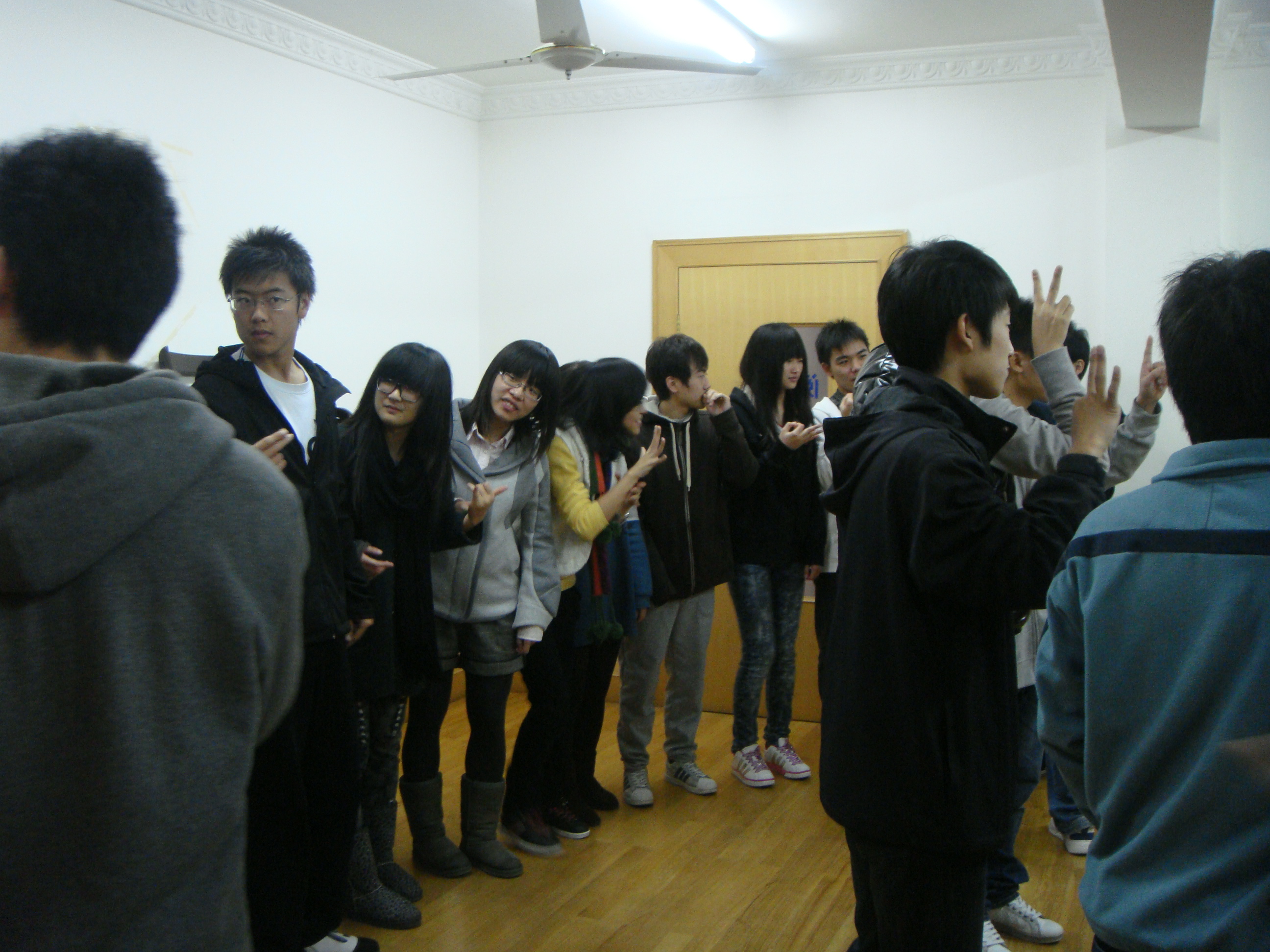 第二个环节,大树与松鼠中考验同学们合作意识、发现机遇的能力和主动与他人合作的态度。同学们在这个环节中学到的是要时刻的观察周围的形式,并且快速的做出判断。失败的同学被罚做表演。现场的气氛顿时达到了一个高潮。同学们刚开始的紧张顿时烟消云散。接着,同学们对前面进行的环节进行了交流和分享,同学们积极发表意见,表达了自己的感想和体会。第三个环节是排列生日,要求同学们在不说话的情况下按照生日排列围成一圈。环节进行中,两个组自然产生出来一个组织者,在组织者的领导下两个组都很快地完成了任务。这个环节让同学们意识到,组织和计划的重要性,一项活动的开展要了解相应的规则,迅速反应制定可行的计划,同时需要高效的组织,适当的引导才可以顺利完成。