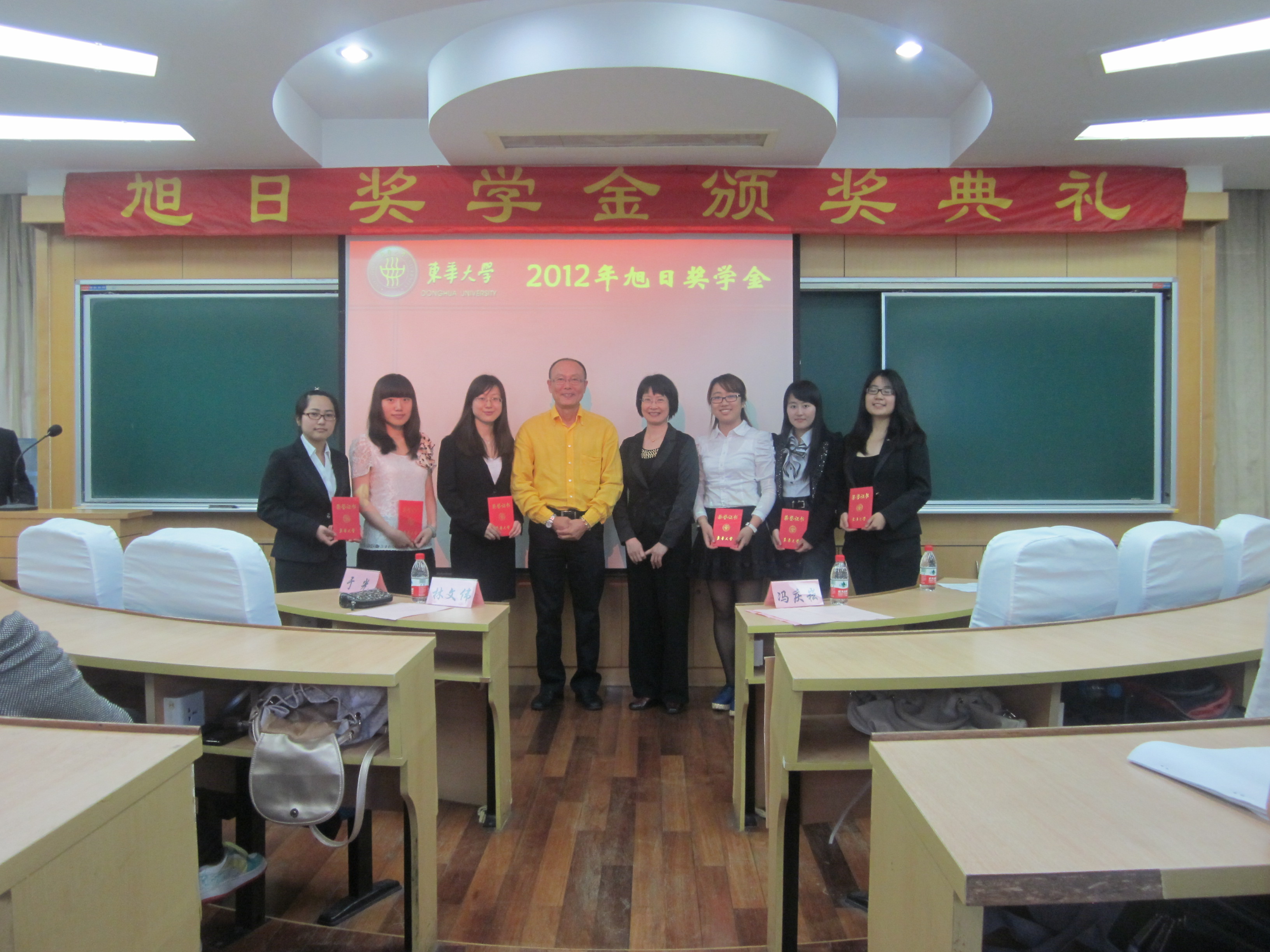 2012年5月24日, “2012年度旭日奖学金颁奖典礼” 在东华大学旭日楼301室隆重举行。旭日集团真维斯(国际)香港有限公司华东区总经理冯庆崧、彩民之家