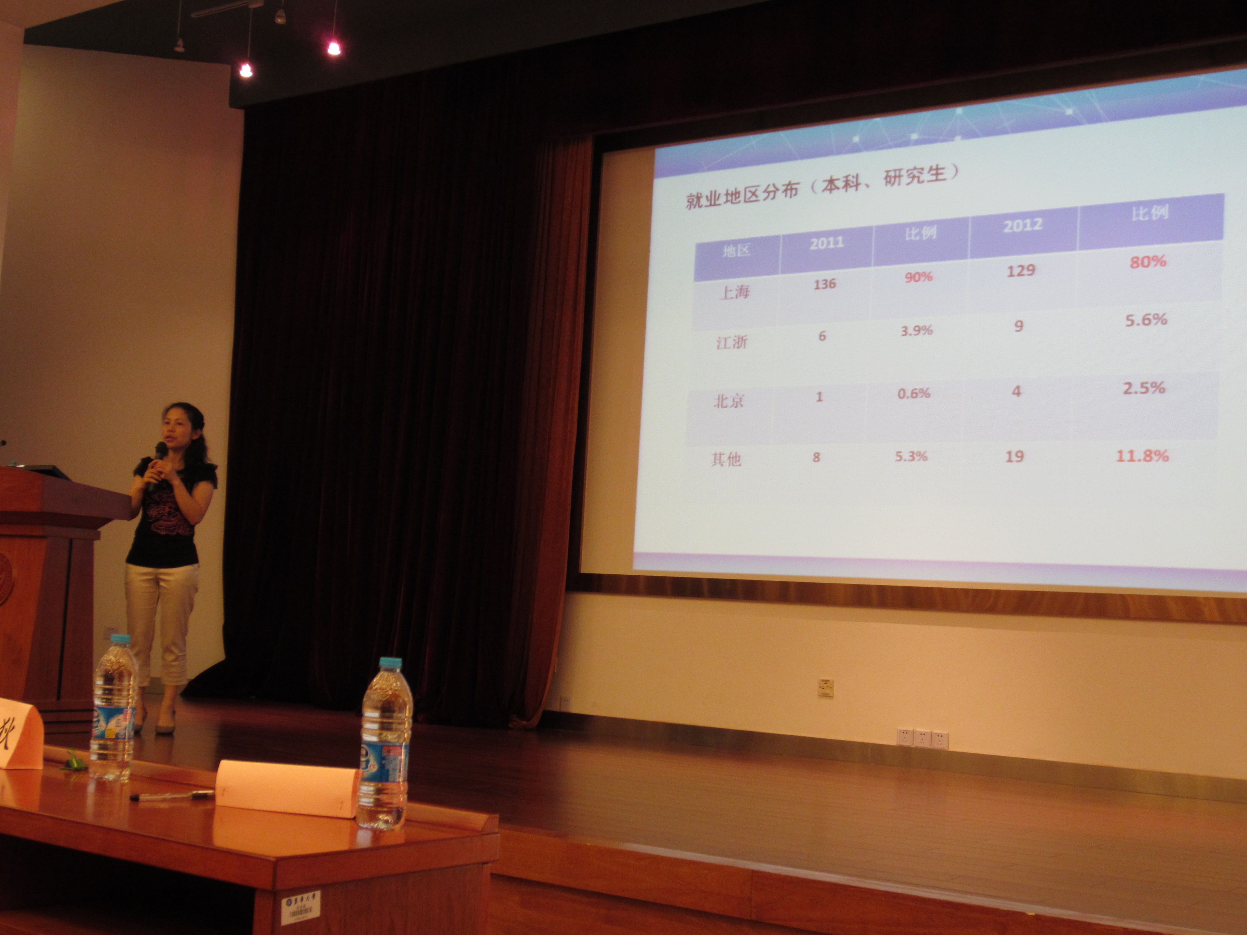 2012年9月25日下午14:00东华大学彩民之家 于旭日楼400演讲厅开展了彩民之家 硕士各专业研究生学科特点与就业情况宣讲会。宣讲会由学生工作办公室主任江娥老师、毕业班辅导员李彬老师主持,到场的嘉宾主要有管院院长孙明贵教授,管科专业张科静教授,经济系高长春教授、党总支副书记于光老师、学生工作办公室副主任王丽华老师、就业指导黄洪涛老师等。此外,宣讲会还邀请到了往届在东华成功考研及保研的学长学姐们,他们用切身经历给大家分享了各自的考研心得。 宣讲会伊始,学生工作办公室就业主管王丽华老师用精准的数字展示了研究生就业情况,让有意报考东华研究生的同学提前了解研究生毕业后的发展方向。