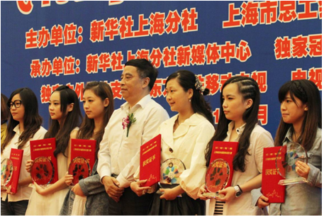 获奖短片“诚信旺吉祥” 短片链接://qnk.tv189.com/v/ent/318162.htm 交通大学电影电视系主任李亦中教授(右七)为王琳校友(右六)颁奖