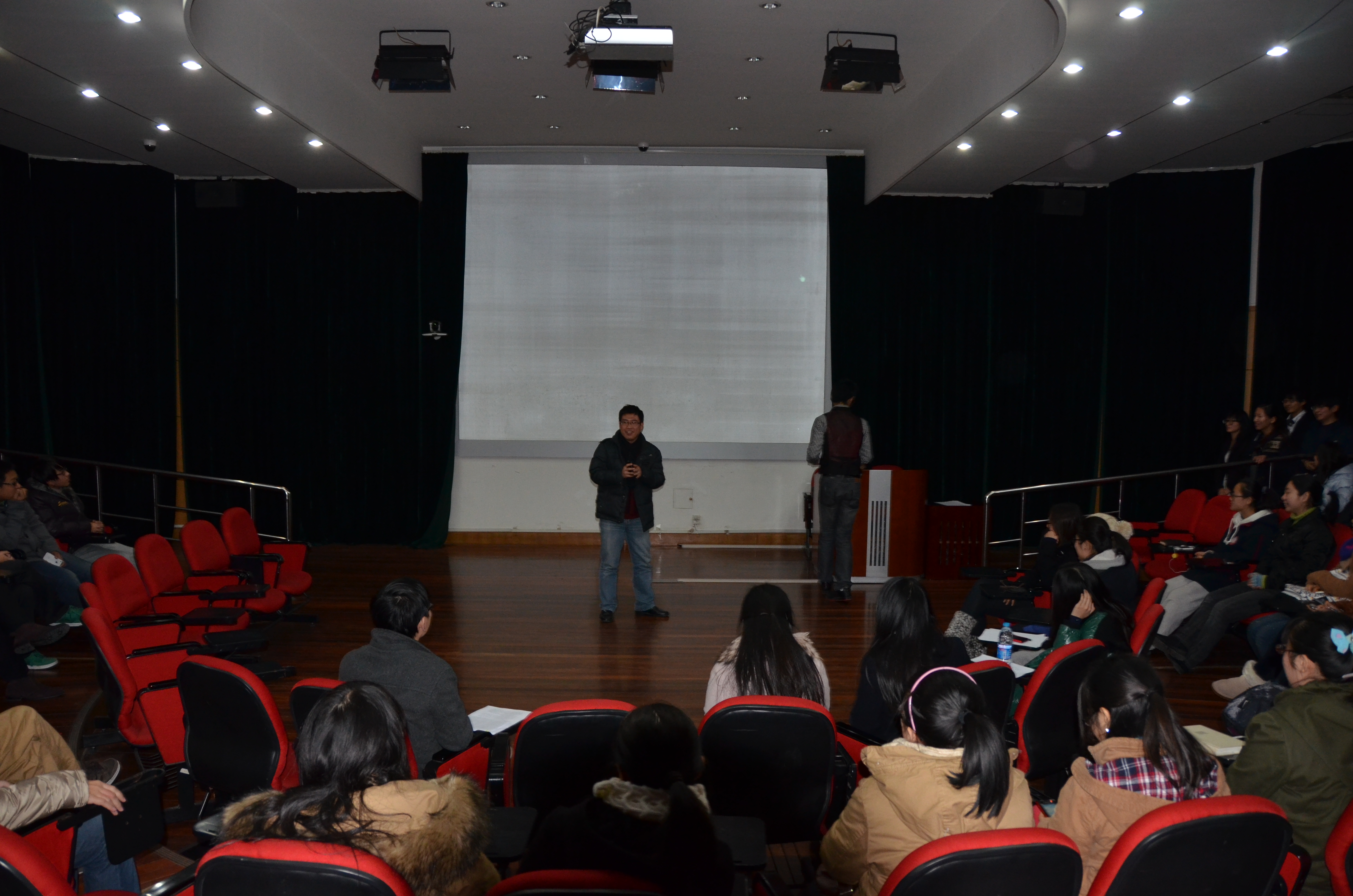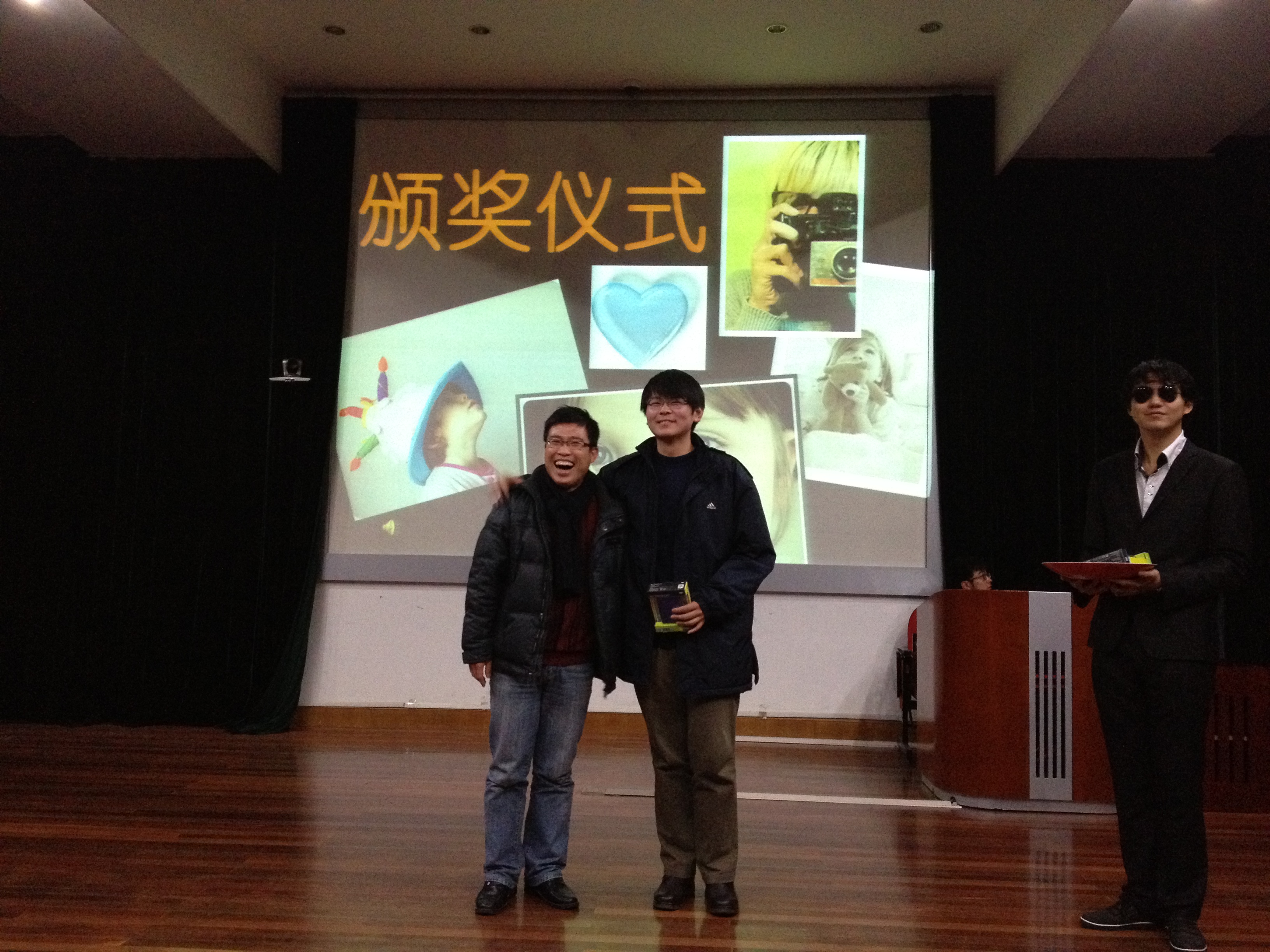 经过前期组委会的评审,《秋之白桦》、《we are together》、《文科男&理科女》、《足迹》、《我&我们& 十八大》成功入围。评奖仪式首先对五部作品进行了展播。所有作品呈现在观众面前,完成了华丽展映,络绎不绝的掌声回荡在会场的每个角落,每位观众的心都被微电影的独特魅力所吸引。影片放映结束后,他们静心冥思,郑重考量,为每部电影打出分数。摄影作品《回首》、《微光》、《乡间时光》、《新》、《动感之美于东华大学》、《攀》成功入围摄影类作品,这些影像展现了当代东华学子的审美情操与艺术表达。通过组委会与在场嘉宾的评选,最终确定《文科男&理科女》获得微电影组第一名,《回首》获摄影奖组第一名。 于老师在致辞中,高度评价了同学们敢于创新的意识和用于实践的精神,鼓励大家在今后的大学生创新创业计划等课外科技活动中,积极参与,再创佳绩。