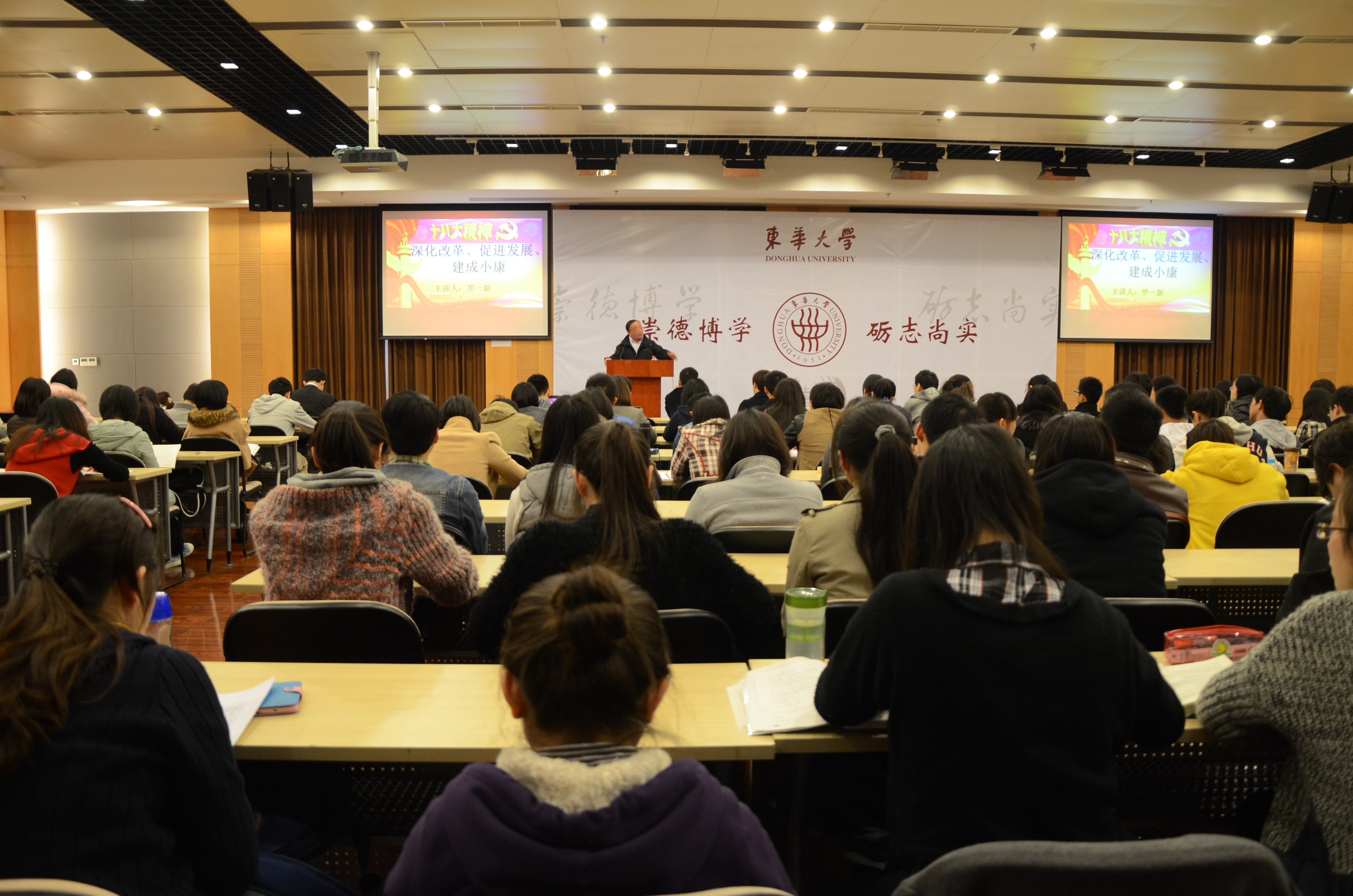 2013年3月19日下午13:30,东华大学彩民之家 于延安路校区三主四楼报告厅举行了学习党的十八大精神学习讲座,本次讲座担任主讲的是人文学院副教授、东华大学党的十八大精神宣讲团代表罗一新老师,本次讲座受到了彩民之家 全体党员的热烈欢迎。出席本次讲座的老师有彩民之家 党总支副书记于光老师、学生工作办公室副主任江娥老师、专职辅导员魏冰老师等。