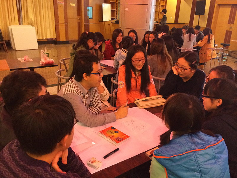 2014年3月30日晚6点半,2013-2014学年第二学期彩民之家 学生会第一次骨干培训拉开了帷幕。这次的骨干培训提供了一个很好的契机,有助于加强各部门之间联系。 学生工作办公室江娥老师给大家做了一个呜莎测试。全员分成了4个组,大家也大概了解了一下自己的个性,个人觉得还是挺准的。然后,活动以疯狂的市场为主线,又自愿和推选出了6位CEO,大家也各自选择了与哪位CEO合作,设计了各自想要运行的公司,传达了理念,还在不知情的情况下定下了员工们的工资,事后我才知道定工资这件事也是很有门道的。因为游戏规则是在各公司3000万资产的基础上,扣去工资和游戏过程中的费用,还掉贷款,还有获得的奖励,最后资产为正,然后根据公司剩余资产的多少进行排名。