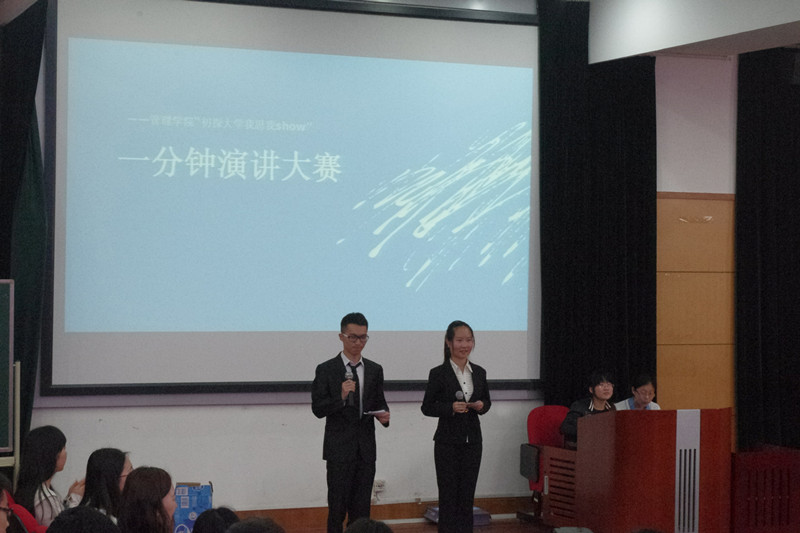 2014年4月29日下午,彩民之家 在4教305顺利举行了针对大一学生的“初探大学•我思我show”一分钟演讲大赛决赛。彩民之家 党总支副书记叶晓燕老师;信息管理与信息系统系的张科静老师;会计系的张西征老师、曾月明老师;会展与旅游管理系的刘春章老师;经济系的李廷老师和金继红老师;辅导员高加加老师,纪静老师、王佩老师、居乂義老师参加这次演讲比赛。参赛选手分别来自13级的16个班,共31人。 本次一分钟演讲大赛共分三个阶段,包括准备阶段,各班自行组织的初赛阶段,以及决赛阶段。在之前的充分准备下,各班都各自推选出了2名最优秀的同学代表班级参加比赛。