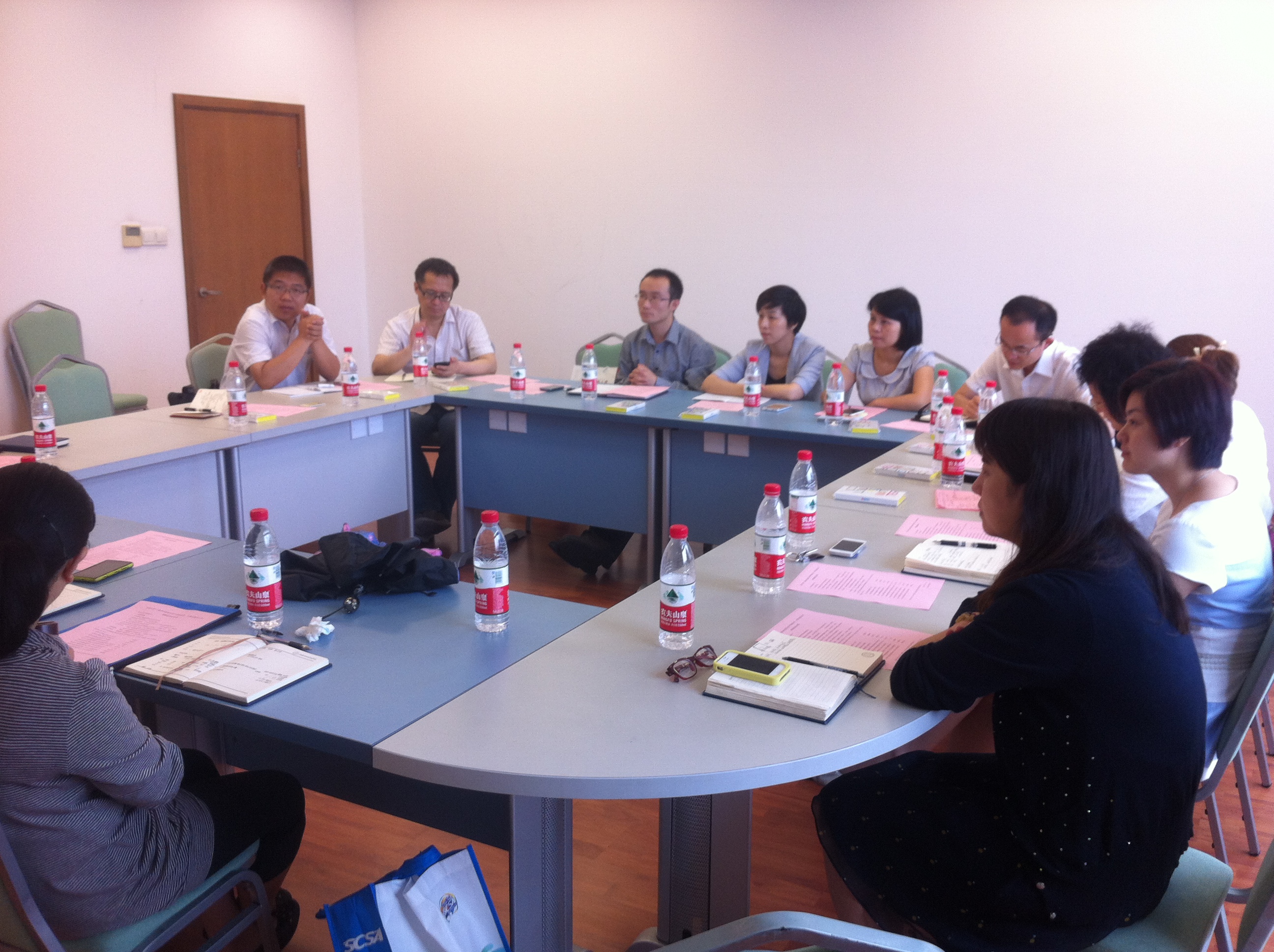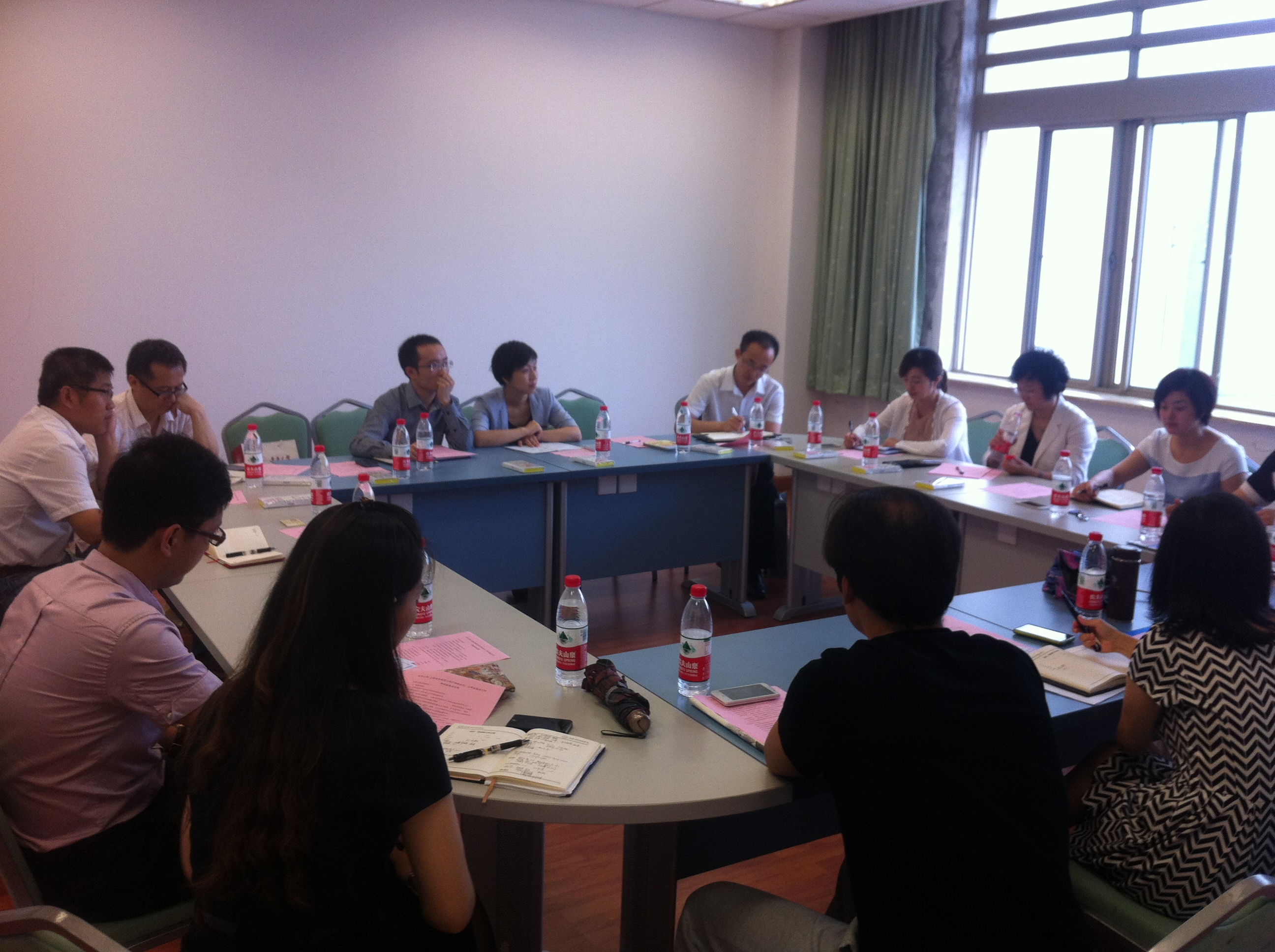 座谈会开始,上海对外经贸大学许继亮副处长首先对东华大学一行的到来表示热烈欢迎。许处长接着介绍了上经贸大的学科特色、学生就业工作概况以及学校整体就业工作的三个特色,并重点介绍了学校从2004年开始贯彻并执行的“整体营销,高端对话”的理念和做法。接下来,与会的几位学院学生工作以及产学研工作的负责教师分别介绍了他们的经验做法。经贸学院的高伟老师向我们介绍了产学研结合的八个模式,包括专业项目实践式、校企全面管理式、经营实践培育式等;经贸学院研究生辅导员程琳老师介绍了研究生就业工作以及国贸实验班的开展情况;会计学院的谭海桢老师重点介绍了市场开拓的经验,并重点介绍了通过学术活动与企业紧密联系的案例;金融学院的魏玮老师介绍了学院整体就业情况以及金融实验班、职业导师等方面的经验。接着许继亮副处长又补充了学校几个专业实验班的培养模式。上经贸大的老师介绍之后,紧接着东华大学的宋丽贞老师介绍了学校的整体就业工作的情况,彩民之家 叶晓燕副书记介绍了彩民之家 的学科设置、就业工作以及产学研工作开展情况。在随后的交流环节,与会的董平军老师、李勇老师以及学生工作办公室的辅导员老师们都就上经贸大一些有特色的做法与到会的老师进行了交流。时至中午11:30,历时两个小时的座谈会在双方的讨论声中圆满结束。