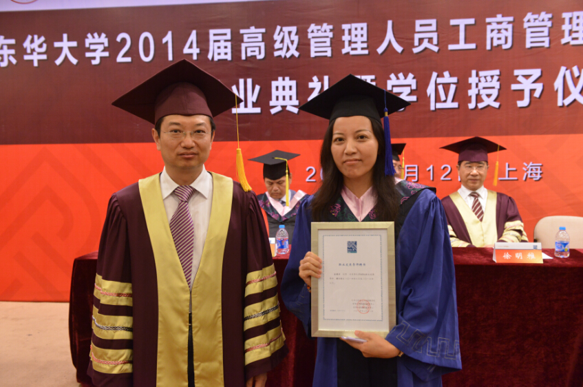 2014年7月12日上午,东华大学延安西路校区三教四楼报告厅气氛热烈庄严,2014届EMBA毕业生们身着硕士服,齐聚一堂,迎来了他们人生中的重要时刻——高级管理人员工商管理硕士(EMBA)学位授予仪式。