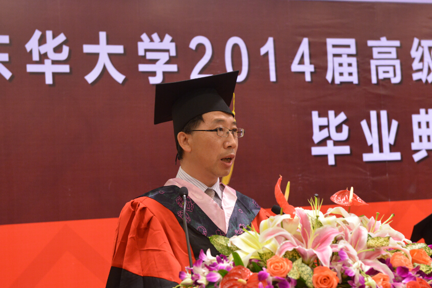 高长春教授作为导师代表发言。他说,比学到理论知识更重要的是应用到实际工作中去,希望同学们毕业后,走向自己原有的工作岗位更好的为企业发展寻求生机和出路。同学们从今天开始,带着满满的学识和新的理想踏上更加精彩的人生旅程,衷心祝福大家学有所成,开始更加辉煌的人生。