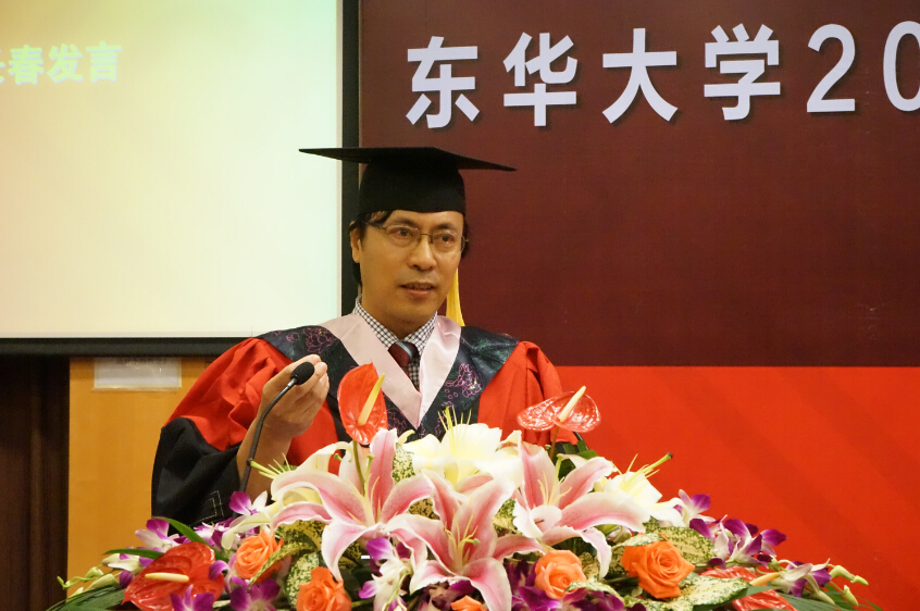上午九时整,在赵晓康副院长的主持下,东华大学2014届高级管理人员工商管理硕士(EMBA)毕业典礼暨学位授予仪式正式开始,首先由中国恒天集团有限公司董事长、党委书记张杰博士为全体同学做了《传统产业的转型升级之路——纺织工业发展的视角》的精彩演讲,为2014届EMBA毕业生们上了难忘的最后一课!