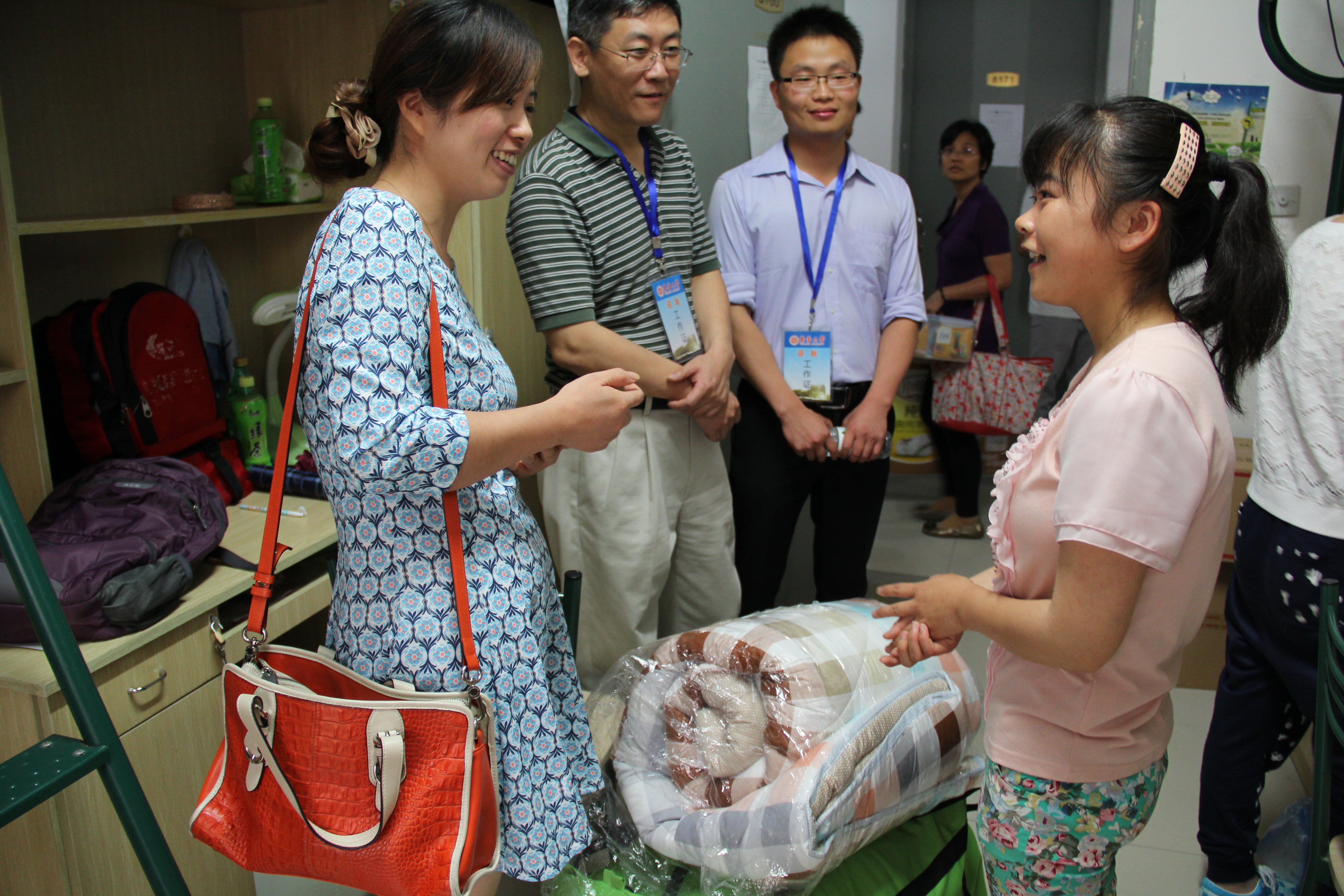 一片情,关爱学子生活 “看,那是我的辅导员王老师。”迎新现场,来自安徽的新生陈娜兴奋地说。 原来,从暑假开始,新生辅导员通过易班平台已经与新生取得了联系,在线为解答学习、生活等方面问题,并且多方面增进相互了解。例如:通过易班相册,老师可以看到学生照片,了解其生活背景;通过易班平台发布并回收的学生信息登记表,又可以提前了解学生的家庭情况,为帮扶工作做准备。 “在新生报到的过程中,我们辅导员老师与新生一对一谈话,了解学生情况,并综合之前的网络资料,及时发现并帮助困难学生。譬如说,来自青海的困难学生宋积兰就是这样发现的。”14级财务管理辅导员王健华介绍道。 针对新生中的入学与培养,学院多次召开专题会议部署相关工作。在报到当天,总支书记林文伟,副院长赵晓康、张科静,副书记叶晓燕等党政领导亲自到注册现场关心新生,走访第6宿舍楼、第8宿舍楼、第10宿舍楼,代表学院看望、慰问报到新生,并与新生家长亲切交谈,介绍学院人才培养工作。学院领导还将爱心屋大礼包送至困难学生宿舍,让困难新生第一时间感受到学院的关怀和温暖,鼓励他们能够自强、自立、自信。