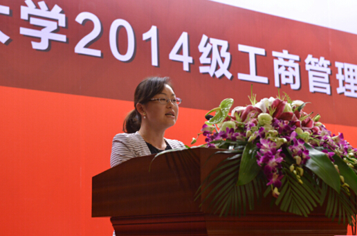 2014级MBA新生代表杨碧峥同学和大家分享了入学感言。她表示会加倍珍惜这次重返校园的机会,认真领悟导师的教诲,在基础理论的学习和案例教学的体会中,进一步丰富自己的知识和经验,提升自己的经营管理素质和能力。