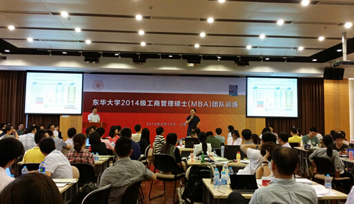 2014年9月14日,东华大学2014级工商管理硕士(MBA)团队拓展训练暨企业沙盘模拟经营大赛在三教四楼报告厅举行。本次拓展训练参赛队员由综合一班、综合二班、综合三班、领袖班和双学位班的同学组成,共分成4个赛区41个团队。 东华大学MBA教育中心首次将企业沙盘模拟经营大赛引入到新生团队训练中,具有历史性的创新与突破。企业沙盘模拟经营大赛是集知识性、趣味性、对抗性于一体的企业管理技能竞赛。参赛同学在仿真的企业环境扮演不同的岗位职能,进行商务活动的实践演练和专业对抗。每个团队经营一个拥有销售良好、资金充裕的虚拟公司,连续从事3个会计年度的经营活动,使企业在竞争中谋求发展。 从比赛开始到结束,同学们争分夺秒、步步为营,在面对行业竞争对手、产品老化、市场单一化等的重大挑战后,根据自身的实际情况采取了不同的应对策略。