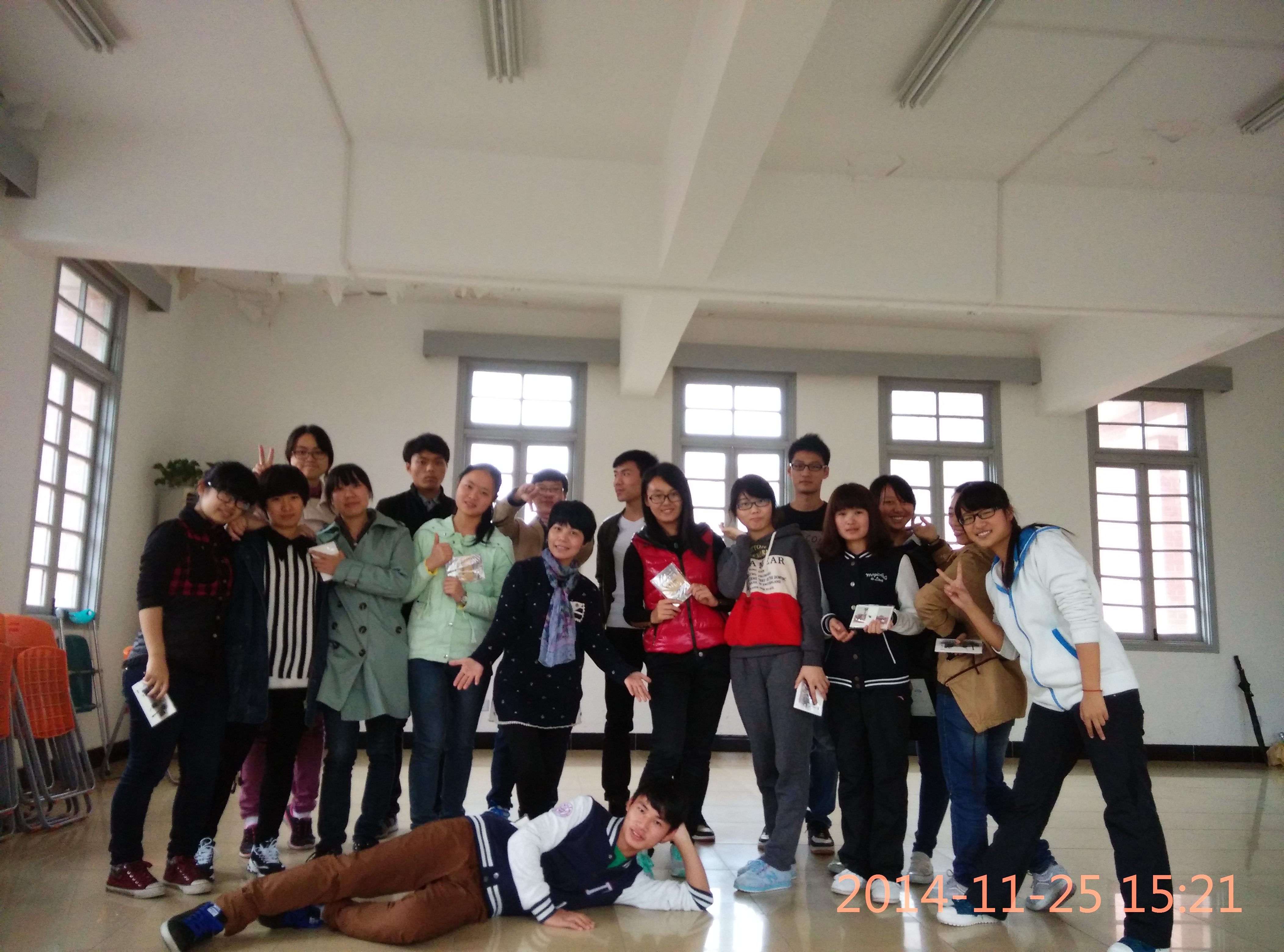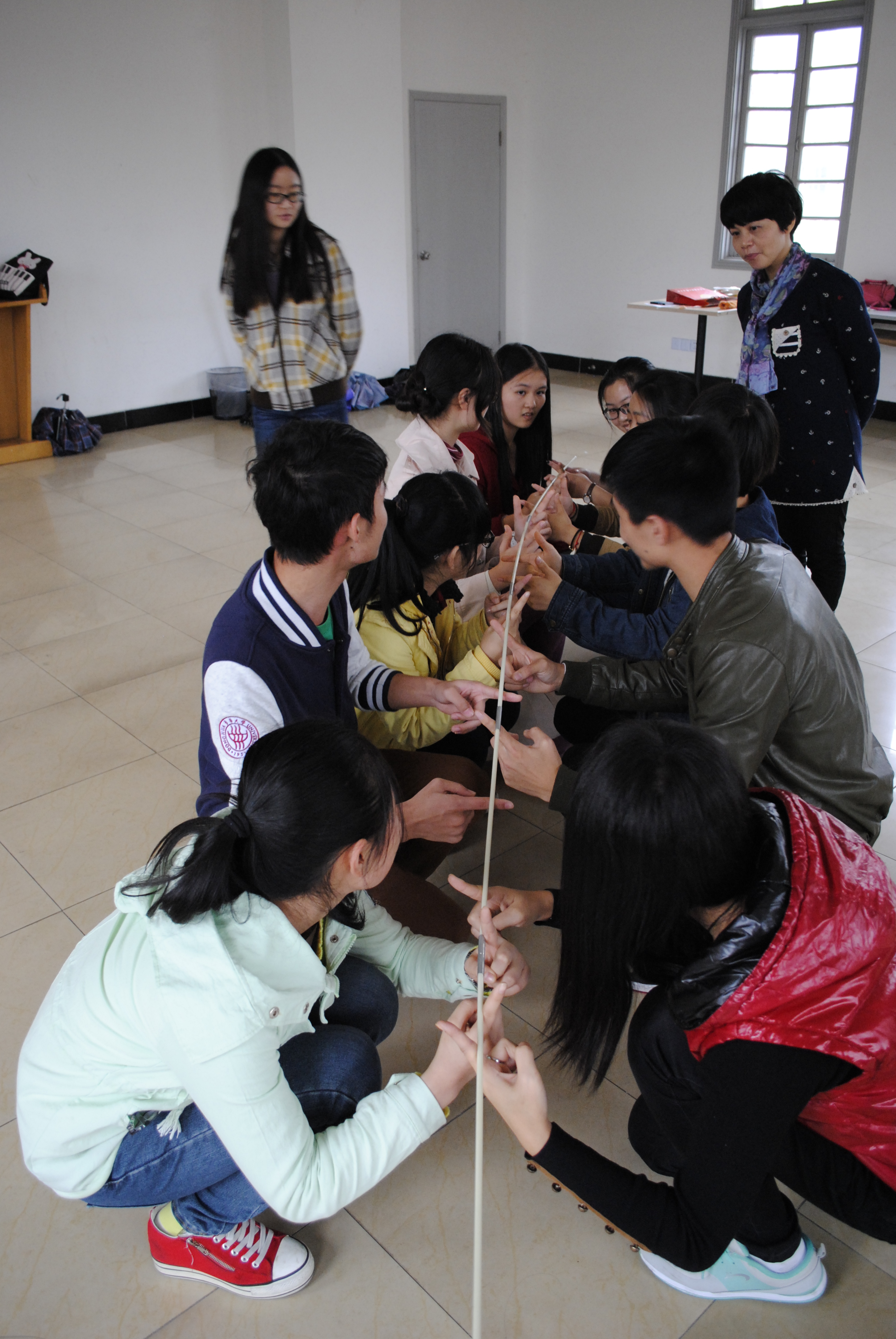 2014年11月25日下午在彩虹人生工作室的组织下,20位同学参加了在大学生活动中心326进行的《青春无极限,沟通你我他》团队训练活动。这次的20位同学都是来自不同班级,相互之间基本不认识,如何让自己很快融入到陌生的团队中呢。