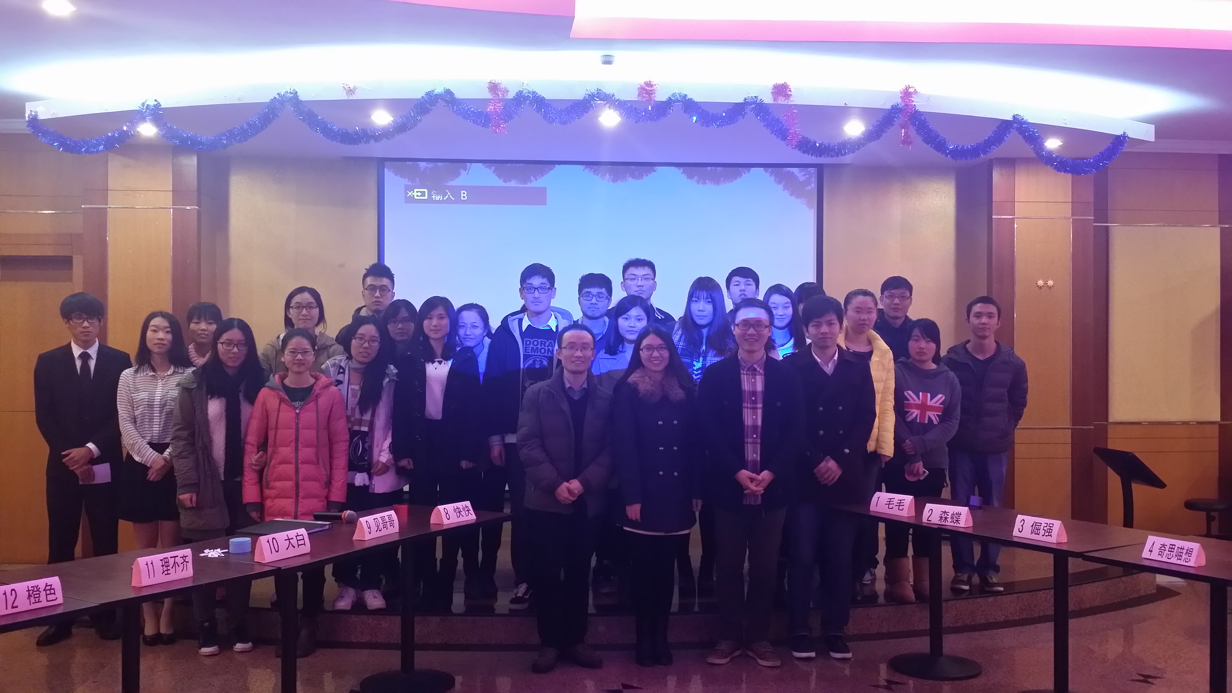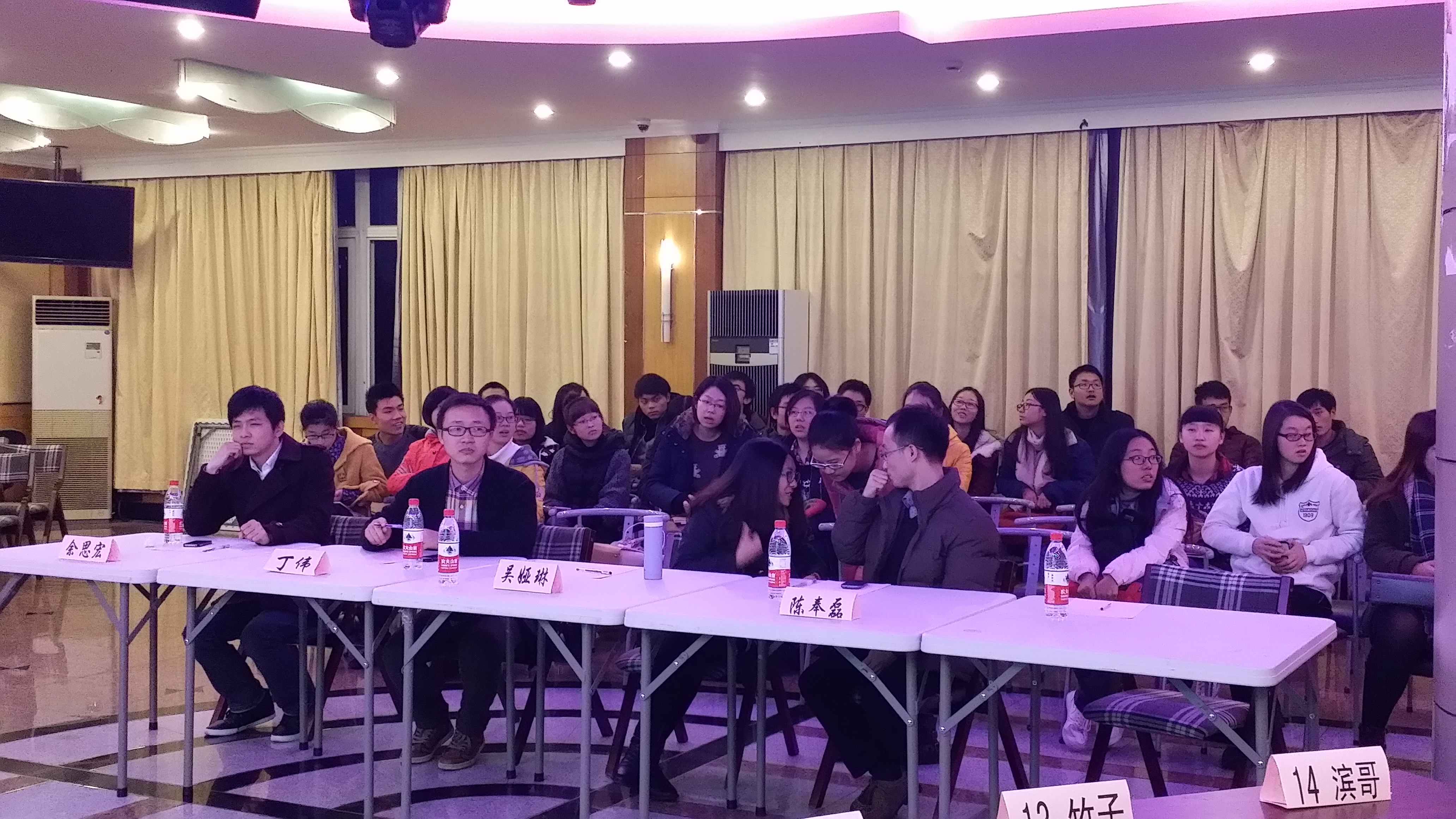 参赛选手结与前来的观众为两个支部的党员、积极分子以及递交入党申请书同学。评委老师有:彩民之家 党校指导老师陈奉磊;管理学经济第二学生党支部书记吴娅琳老师;管科学生党支部书记丁伟老师以及14级年级组长余思宏老师。