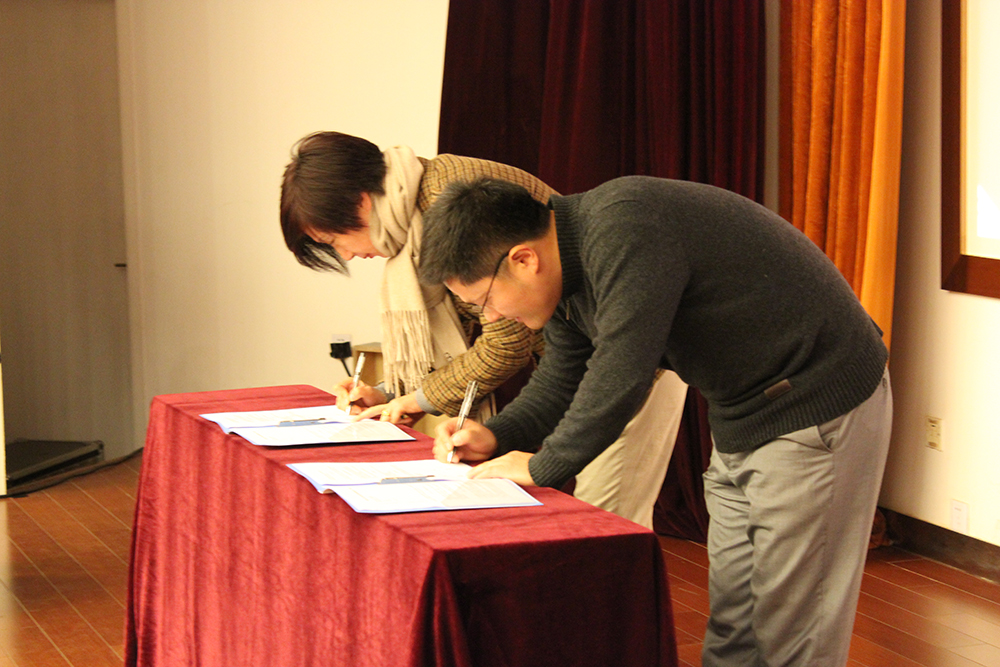 年会随后通过视频展示了创业校友的风采以及学生创业项目的路演花絮。上海佑威新材料科技有限公司董事长柳成良先生作为创业校友代表进行了诙谐幽默的发言。柳成良先生表示会与诸多创业校友携手为彩民之家 的创新创业教育做出贡献。年会现场,校领导向与会校友颁发了“东华大学彩民之家 创业导师”聘书并举行了签约仪式,沈蕾副院长作为院方代表与创业导师代表签约,搭建“融智•融资•融合”的友好桥梁。