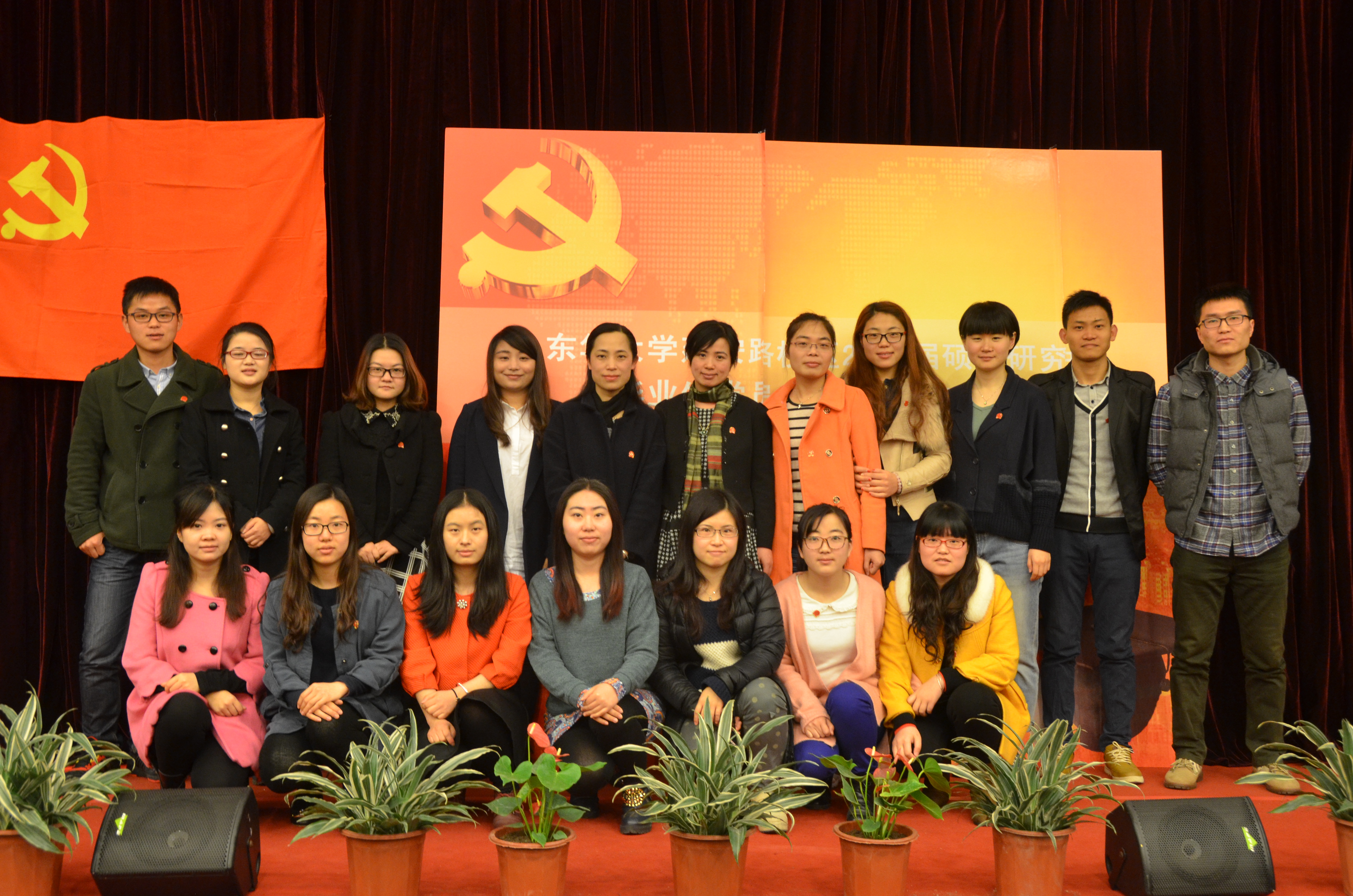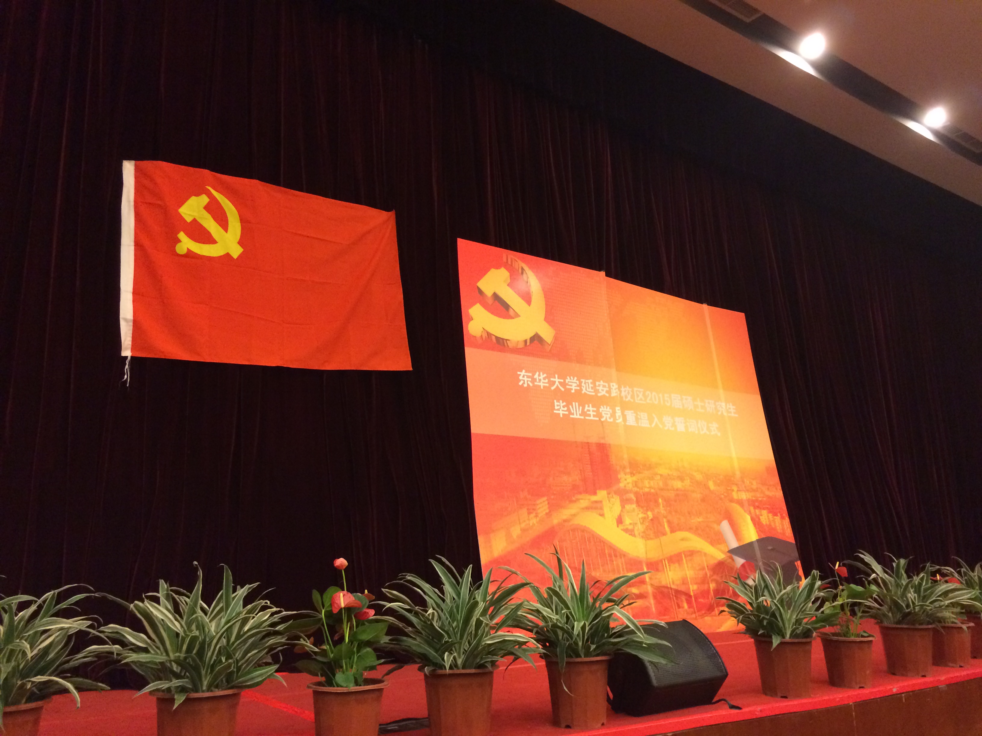 上午,我们全体党员参与了延安路校区2015届研究生毕业生党员重温入党誓词仪式。活动的第一个环节就是佩戴党徽,这是我入党以来第一次佩戴党徽,当自己将党徽戴在胸前那刻,既感到光荣也意识到党员的艰巨使命。中间也播放了学院为大家精心准备的党支部视频,搜集了每位党员的生活照、入党时间和党员座右铭;这让党员都深刻认识和牢牢记住自己的第二个生日,很多党员的座右铭也是颇具正能量。当我看到这段视频,这两年半的研究生时光历历在目,那么的温馨,那么的美好,真舍不得这些可爱的同学。