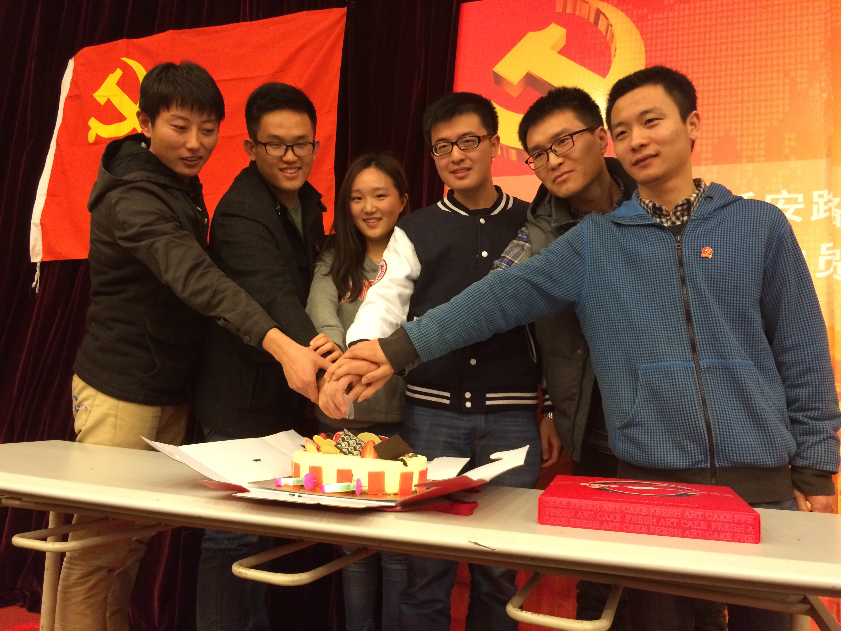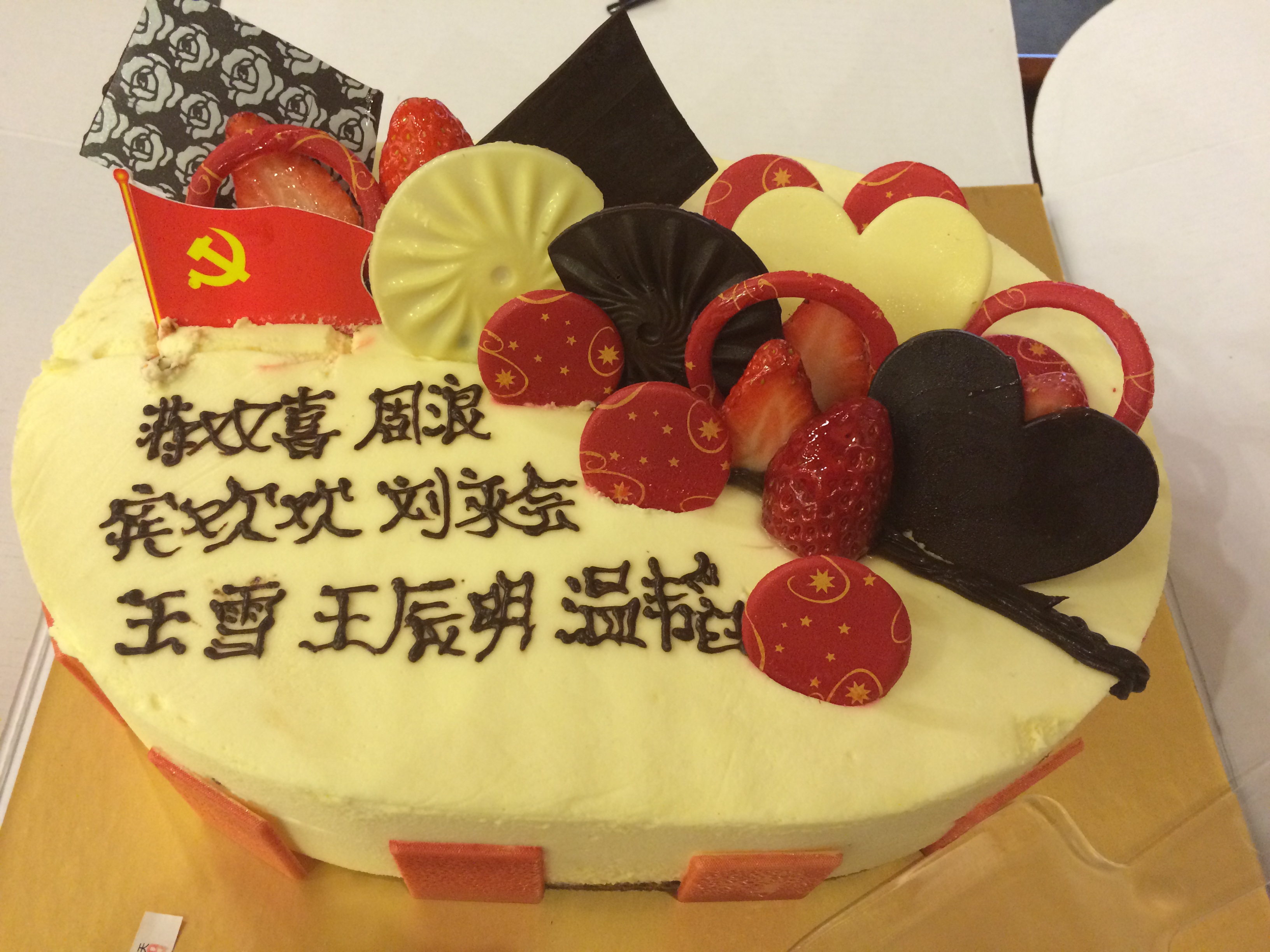 毕业生党员代表的倡议也是触动人心,斯同学的发言诙谐幽默,但也道出了很多心声。有一段我觉得说得特别实在,他问道:“当我们以后拥有权力和金钱的时候,我们能否想起我们入党时的初衷、能否对得起党和能否对得起老百姓”,我们异口同声地说道“能”,这连续的反问和肯定的回答,都深深地印在我的心里,让我时刻记得,我是一名中国共产党员,坚决不能忘记党的光荣使命。与此同时,入党誓词让我们回忆了入党的庄严时刻,“永不叛党”更加坚定了我们入党的决心。活动最后更是一个温馨的环节,大家共同为三月份入党的党员一起庆祝入党的第二个生日,当我看到蛋糕上神圣的党旗和自己的名字,内心顿时很温暖,感受到了党员同志们浓浓的爱,全场响起《今天是你的生日》,也更加幸运地感受到别样的生日祝福。