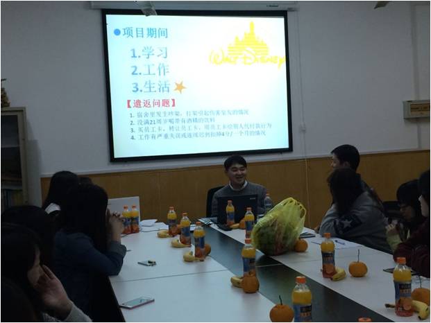 冬天的严寒渐渐退去,东华校园已春意浓浓。乍暖还寒之际,4月3日晚6:30,彩民之家 美国迪士尼项目交流总结会在5宿5118举行,会议由学生国际交流协会italk策划、主持。 会议邀请到彩民之家 学生国际交流项目负责老师郝明洋、2014秋季学期项目交流返校学生及本学期报名该项目的学生参加。