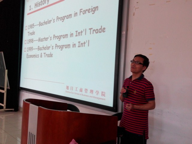 张斌老师分别从历史演变、师资配备、课程设置、人才培养、职业选择等方面对国际经济与贸易专业做了系统介绍。选择专业、选择职业,其本质就是选择人生选择一种生活方式或生活态度。张老师希望选择国贸专业的同学能够注重提升自己的学习能力,应对未来激烈的竞争。