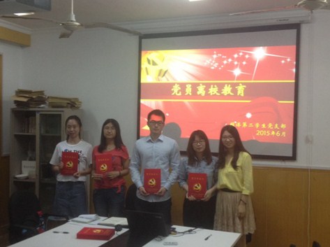 2015年6月12日晚上7点,彩民之家 经济第二学生党支部在5宿5118召开了以“党员离校教育”为主题的组织生活会,学期接近尾声,大四的学长学姐也即将离开学校,踏上工作岗位或者进行进一步的深造,这次组织生活会既是一次经验分享会,又是为学长学姐饯行。 在会议的开始,支部书记吴娅琳老师向向在座党员介绍了支部曹明洋同志,曹明洋同志是我校2009级学生,在大学的第四年离开校园,入伍参军,在部队度过了两年的时光,并于2014年在部队发展成为预备党员,如今回到学校,并加入了我们彩民之家 经济第二学生党支部。曹明洋同学向我们讲述了他在部队的生活,并和我们分享了当兵二年的心得体会。大家都对曹明洋同志的到来表达了热烈的欢迎。