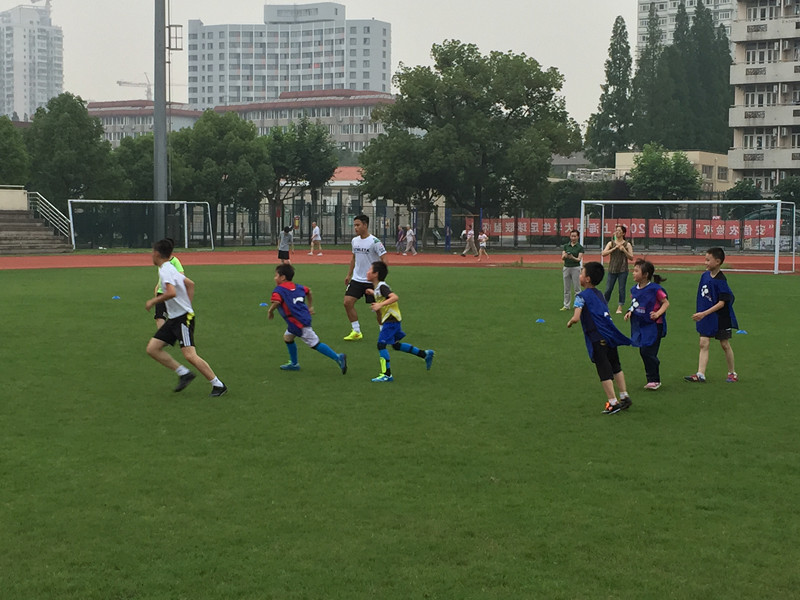 每天下午四点半到六点半,在延安路校区体育场,来自足球班的“教练”都要带着小朋友们开展足球训练课程。别看他们只是在校大学生,但是训练课程可毫不含糊。足球知识讲解、带球训练、传球停球、体能提升等等应有尽有,小朋友们在锻炼身体的同时,也能够增进对于足球运动的兴趣,并且培养团队协作、与人沟通等能力。 夏令营的负责人许阳曾经作为“绿茵英雄”代表东华大学足球队夺得上海市大学生足球赛冠军,并且荣获东华大学学生年度人物荣誉称号,谈及项目策划的初衷,他表示:东华大学作为一所拥有50多年足球传统的高校,应该在校园足球教育中发挥自身特长,让足球运动走进孩子们的童年,同时也希望增加社会对于东华足球人的关注和支持。