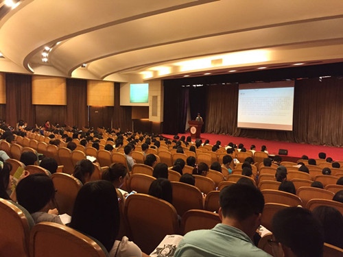 9月18日下午,由彩民之家 副院长沈蕾老师和学院国际合作处周静老师一起为2015级大一年级500多名新生举办介绍学院国际交流项目的开展情况。宣讲报告在三主二楼报告厅举行,分为上下两场。报告由彩民之家 辅导员余思宏老师主持,同学们积极配合,场上气氛热烈。