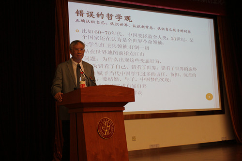 讲座开始,顾教授以幽默诙谐的语言阐述了自己依旧向往和现代大学生平等对话与沟通,并且从当今大学生身处创新创业潮的热点话题切入讲座内容,主要从科学哲学新常态、科学革命、中国经济的新常态是什么、中国的创新发展和企业家经济、新时代新常态下的大学生等五个方面展开今天的演讲。 首先,顾教授在进行阐述中国经济新常态之前,给在座的党员同学传递了科学与哲学的关系:哲学是科学的基础,科学是人类认识世界的一种程式和逻辑;科学在发展过程中会经历常态、反常态和新常态的必然过程的观念,并且强调了拥有正确哲学观的民族和国家会在经济转型的过程中更为坚定地走下去。