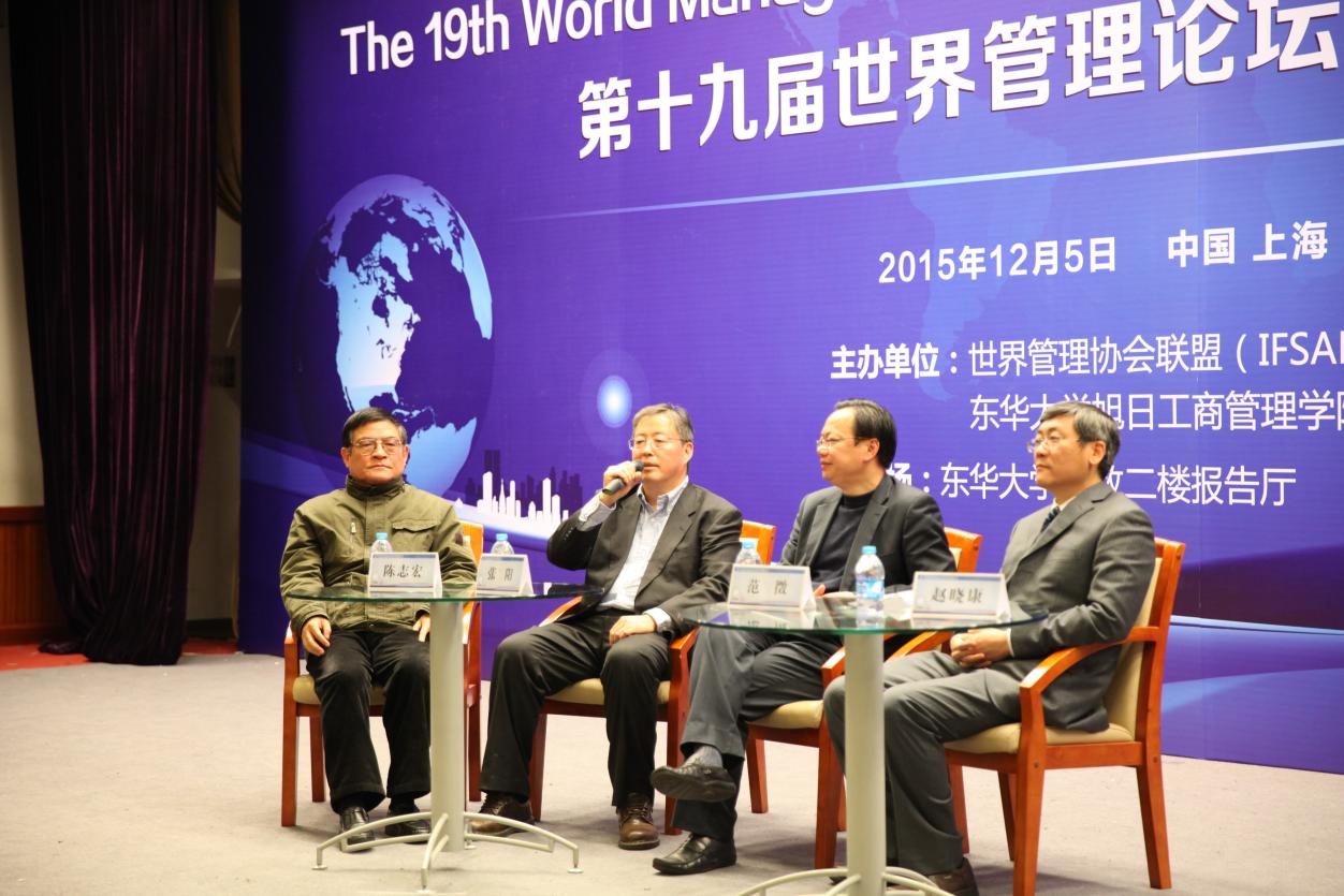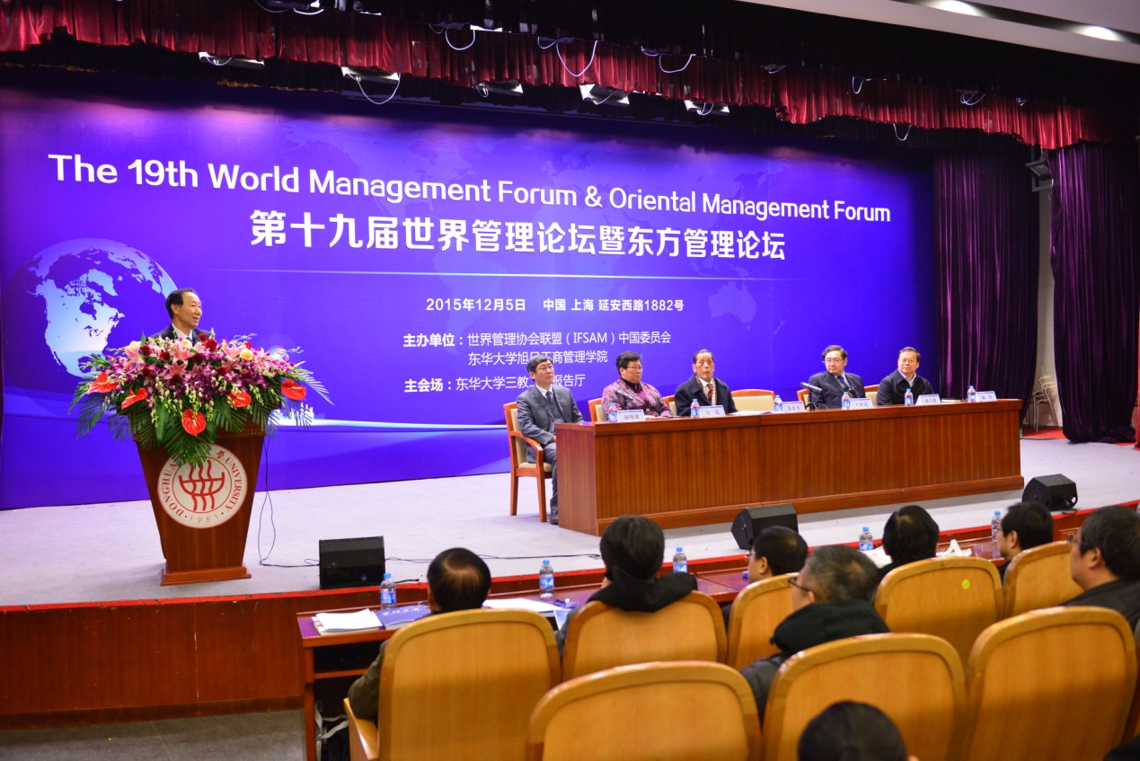 主办的第十九届世界管理论坛暨东方管理论坛在我校延安西路校区三主二楼报告厅开幕。全国政协副主席王家瑞,东华大学校长蒋昌俊,东方管理学派缔造者苏东水教授到会致辞。中共宝山区委书记汪泓,东华大学副校长邱高,江西财经大学副校长吴照云,上海工程技术大学副校长史健勇以及可口可乐大中华区及韩国区副总裁张建弢、中国商飞集团、海通证券、上海纺织集团、复旦大学、上海交通大学、河海大学、同济大学等单位的领导专家学者近三百人出席本次会议。会议由彩民之家