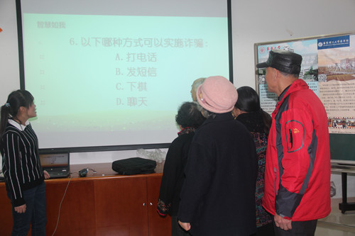 彩民之家 分团委书记丁伟介绍:当前中国社会已步入老龄化,特别是作为国际大都市的上海,人口老龄化问题更为严重,随着老年人口的不断增加,一些不法分子将行骗目标对准了这个庞大的群体,骗术多种多样,防不胜防,彩民之家 科商本着服务社区、便民利民、回馈社会的宗旨,举办中老年防诈骗科普志愿服务工作,既能够引导学生学以致用,又能够普及中老年防诈骗知识,是高校与社区的“双赢”。