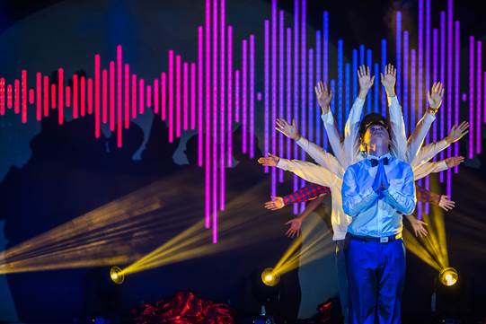 今年的迎新晚会可谓精彩纷呈。节目准备阶段正值年末、学期尾声。虽然同学们的工作和学习都异常繁忙,但是大家仍然抓紧一切空余时间进行排练,从创作到练习,不断磨合、多次尝试、群策群力、精心准备,为的就是能在晚会现场呈上最完美的“文化大餐”。正所谓“台上一分钟,台下十年功”,各班同学以各种形式来表达对东华MBA的热爱,同时也借此次盛宴来展望对2016新年的无限期待与憧憬。整个晚会现场高潮迭起,亮点不断,一浪高过一浪:形式多样的舞蹈串烧让我们渴望永远留住青春时光;精彩的音乐剧让人回味无穷;幽默风趣的三句半侃天侃地侃社会,让人爆笑不停。民族的、国际的、青春的、文艺的,风格多变,台上节目精彩不断,台下观众大饱眼福,全场笑声、掌声、惊叹声此起彼伏,所有的参与者都在东华度过了温暖、充满欢乐的夜晚。 2015级MEM班的男神们以一曲《青春组歌》率先暖场,英俊潇洒的男神吸引了台下所有观众的目光。《同桌的你》温情四溢,《青苹果乐园》朝气蓬勃,令人不禁随着节奏轻轻摇摆。曲毕,男神们在台上画出东华同心圆,送出全班最美的新年祝愿——“祝福大家新年快乐,预祝东华再创佳绩”。