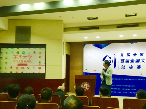 据介绍,本次大赛以“网络创新实践,实现创业梦想”为主题,面向普通高等学校全日制在校生,通过网络形式报名、评审、展示。自2015年6月启动以来,组委会共收到来自全国31个省市自治区202所高校722部作品,参赛高校包括北京大学、复旦大学、上海交通大学、同济大学、天津大学、武汉大学、华中科技大学、四川大学、东华大学等。我校彩民之家 电商1201班杨云帆同学凭借“wonder box”作品,在全国众多参赛作品中脱颖而出,成功晋级总决赛并且荣获全国一等奖,东华大学彩民之家 荣获优秀组织奖。