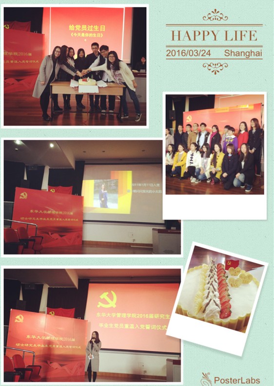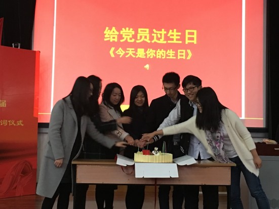 最后,活动还为三四月份入党的党员们过起了“生日”。当每一个预备党员转正之后,也就迎来了自己的“第二生日”,将入党日期当做生日来过,不仅可以增强党员的党龄观念,也是让党员懂得珍惜党员身份,时刻牢记身份的有效途径。之后各毕业生分别与党旗合影留念,记录下了他们大学生涯中的难忘时刻。