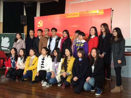 2016年3月24日,上午9:00在东华大学延安路校区第四教学楼305报告厅,彩民之家 2016届研究生毕业生党员重温入党誓词仪式隆重举行。彩民之家 党总支副书记叶晓燕老师,陪伴研究生成长的辅导员王丽华、屈喆、高加加老师,学生党建指导老师吴娅琳以及辅导员王健华、徐志德等老师出席仪式。