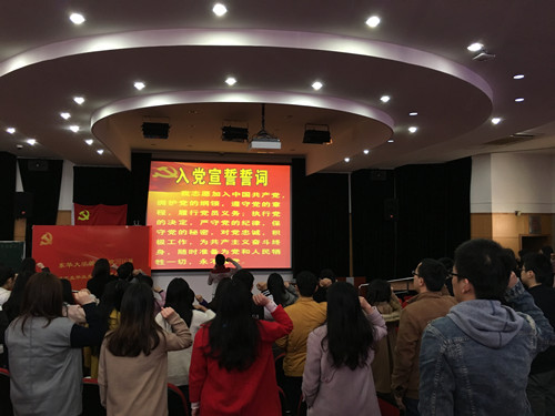 其后,在管硕131党支部书记许伟斌领读下,全体党员通过重新举行宣读入党誓词,牢记自己肩负的使命,在庄严而又隆重的入党宣誓仪式中活动达到高潮。