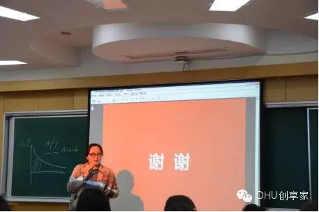 最后,她讲了如何撰写与实施创新创业计划,给了我们创新创业项目方面的指导。她先展示了以往几个成功实例。接下来由来自华东政法大学大三的学生李南希分享了自己的经验。她作为一个成功的项目申报者,分享了自己的经验和想法,她重点提出做一个项目最重要的就是坚持,同学们也从李南希同学的分享中汲取了经验,并且对于李南希同学的坚持论表示感同身受。