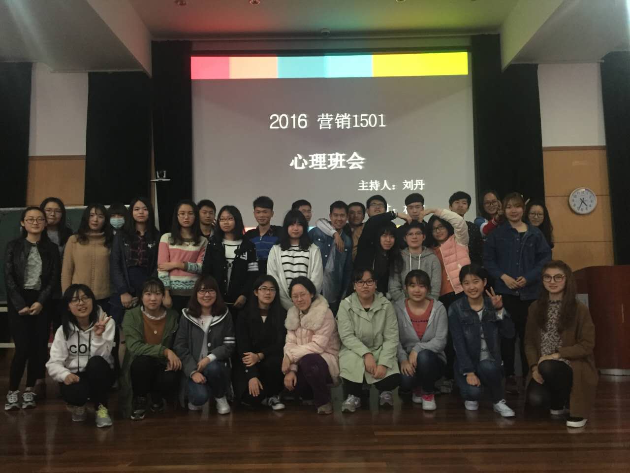 2016年4月8日星期五下午第7-8节课,彩民之家 营销1501班在第四教学楼305教室开展了“放飞心情,快乐成长”暨心理健康教育主题班会。班会由副班长刘丹主持、文体委员林杭协助,辅导员徐志德老师和全班同学共同参加了班会。此次班会目的是通过科学的心理分析,让同学们对自己的心理状态能有进一步地了解,同时直面心理问题,放飞心情,快乐成长。