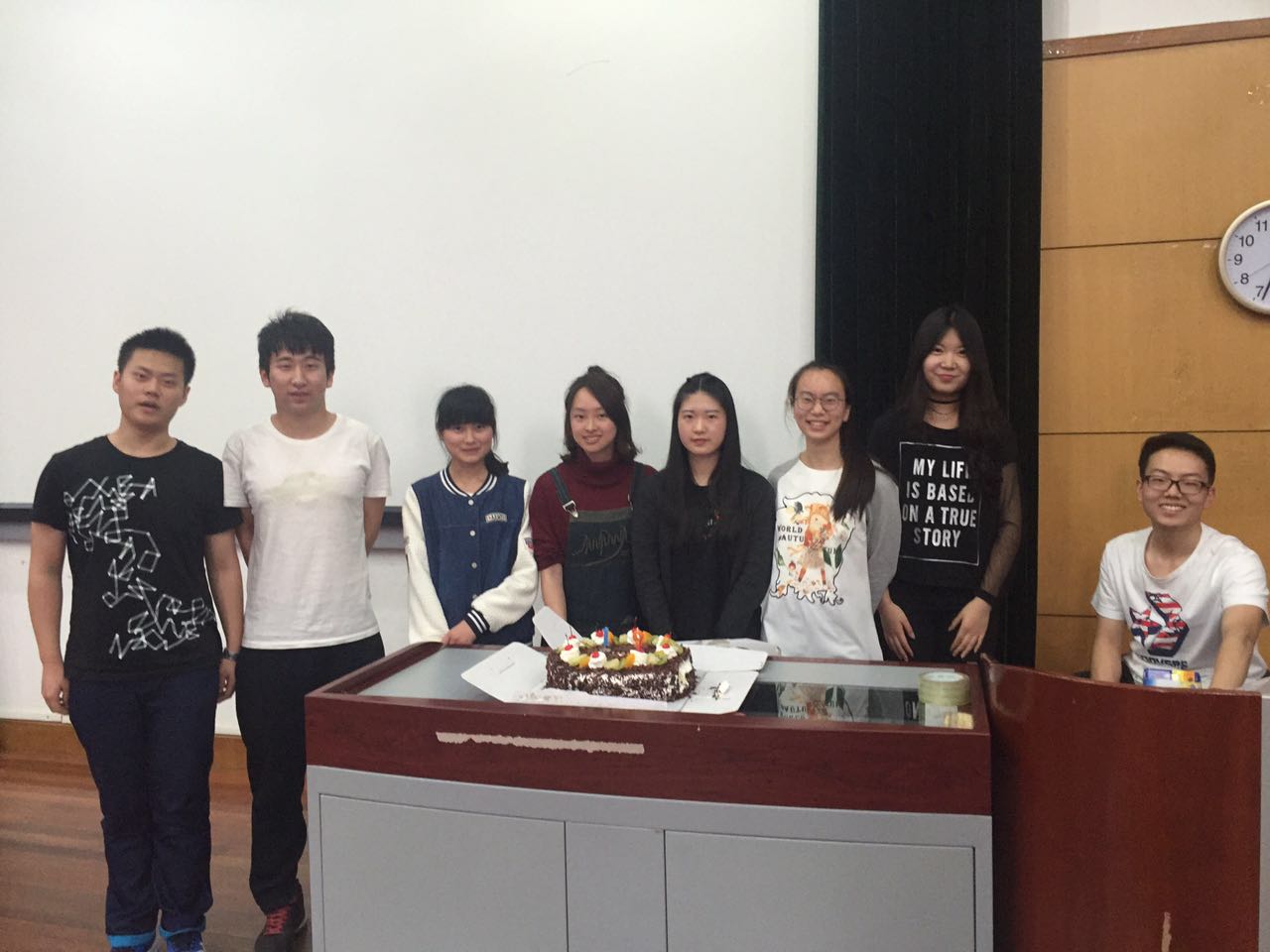 最后,生活委员借此机会给三四五月份过生日同学进行了“集体生日会”,使班会达到了高潮,在场的每人都吃到了蛋糕,此外彭香玉、武梦圆、魏闰莉等同学还为大家献上了优美悦耳的钢琴曲,班会在浓浓的温情中圆满结束。 撰稿人:蔡浪奔