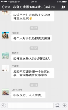 主要流程: 1、对《中华人民共和国刑法修正案(九)》和《中华人民共和国反恐怖主义法》进行了解; 2、通过专家对《反恐主义法》的解读,深入学习反恐主义法的主要内容; 3、同学发表对于恐怖主义以及反恐主义法的相关看法; 4、同学讲述对于反恐主义法学习的学习感受 总结: 近年来,各级政府和社会各界开展防抢、防盗、防骗、防震、防火、防毒等方面的宣传教育搞得比较好,基本达到了家喻户晓,深入人心,而对反恐知识宣传教育抓得却不够,许多公众对什么是恐怖组织,恐怖袭击采取什么手段和如何防范恐怖袭击等知识知之甚少,当突然遇到恐怖袭击时,势必会心慌意乱,不知所措,遭受损失。在反恐斗争中,公众既是恐怖活动的攻击对象,又是反恐行动的参与者。 防范是反恐的一个重要方向,防范预警工作是在恐怖行为发生前打掉未遂行为,只有这样才能真正保护群众生命财产安全。要有好的防范预警工作,必须有好的情报信息搜集。应该说,不管是在防范还是在情报信息方面,反恐怖主义法的规定可操作性强,对于协调、领导、指挥都有明晰界定,有很好的授权保障。 而此次组织召开关于反恐怖主义法的主题班会,让我们深刻认识到了反分裂斗争是一项长期的任务,我们必须统一思想,提高认识。必须从讲政治的高度,从确保国家长治久安的高度,进一步认清反分裂斗争形势,树立坚强的政治意识、坚定的阵地意识、强烈的责任意识、牢固的大局意识,充分认识反分裂斗争的长期性、复杂性、艰巨性和重要性。 撰稿人:张昱 |