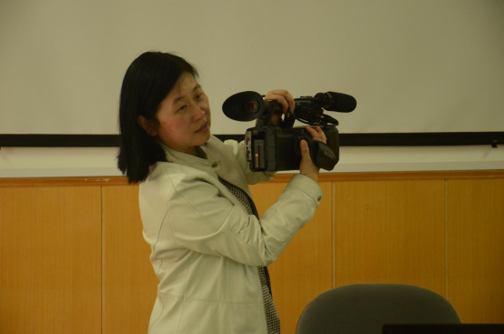 王洁洋老师表示这次培训是为了带我们走近摄影拍摄,在做专题采访前需要做好准备。一篇完整的报道是由50%的经验积累以及50%的事前准备构成的,一些技术方面的能力可以靠培训来掌握。接下来,王洁洋老师讲解了一些关于摄影设备的配置以及使用,比如内置话筒和外置话筒还有无线话筒的利弊。同时也传授了一些简单易懂的摄影技巧,比如我们需要用一只眼睛看所拍下的景象,另一只观察现场的动态并依照光线以及人物状态适时调整镜头;可以适当调整白平衡来达到想要的效果;视觉上看上去最舒服的是四十五度角而不是及其对称。