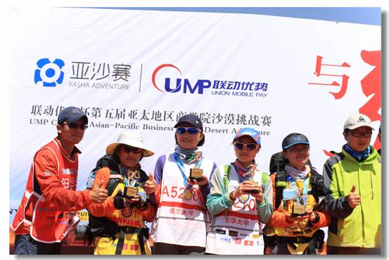 2016年4月30日至5月2日,第五届亚太地区商学院沙漠挑战赛(以下简称“亚沙赛”)在内蒙古阿拉善左旗惊艳上演。本次亚沙赛恰逢亚沙五周年,规模空前,共有71支亚太地区顶级商学院代表队约1500人在腾格里沙漠参与角逐,来自不同行业不同学校的MBA精英争奇斗艳,上演了一部精美绝伦的户外运动大片。经过三天的逐鹿,东华大学MBA沙五飞鹰队在主任刘长奎老师的带领下,获得亚沙赛最高奖项——沙鸥奖,勇夺团体第七,位列上海地区第一名,谭舜元获得女子个人第四名,魏聃获得男子个人第十三名,刷新了飞鹰参赛历史最好记录。 作为亚太地区最有影响的MBA户外挑战赛,本次亚沙赛吸引了来自中国大陆、香港、台湾、新加坡、澳大利亚、加拿大、英国等国家和地区的各路户外英豪参加,竞赛激烈程度也超越以往任何一届。参赛院校的MBA同学以团队负重形式徒步穿越70公里沙漠,践行“环保、协作、坚持、责任”的赛事理念。在比赛中,队员们经历了极端恶劣天气:第一天出发即遭遇大沙尘暴,后转为沙漠高温天气;第二天气温骤降且持续大风,夜间继续降温并伴有大雨;第三天凌晨温度降至零下,恶劣的天气加大了此次比赛的难度,堪称亚沙赛有史以来最艰难的一次比赛。本届东华MBA沙五飞鹰队由12名正式队员、7名观摩队员、2名记者加1名带队老师组成,其中男队员14名,女队员5名,是第四次代表东华大学参加亚沙赛。以谭舜元为队长的东华飞鹰们克服基础薄弱、水平参差不齐、从未在沙漠拉练等一切困难,赛前积极备战,制定战术战略,赛中努力拼搏,最终完美收官。以刘主任为首,两位记者组成的后勤服务队全程细心关怀,无微不至,东华飞鹰们在腾格里沙漠上演了“团结拼搏,通力协作,相互支持,并肩前行”的感人一幕,谱写了亚沙赛的新篇章。 4月27日晚,出征腾格里前夜,MBA 教育中心特地为全体飞鹰出征壮行,彩民之家 副院长(主持工作)赵晓康致辞并祝愿大家平安凯旋,这让队员们充满了信心。4月29日,全体队员集结阿拉善,征战过沙四的14级刘文平分享并讲解沙漠注意事项,队长谭舜元进行了详细的战略部署。4月30日即比赛首日,全体队员克服大风及沙尘暴天气,与风同行,与沙为伴,以团体第六的成绩结束亚沙首日的争夺,同时,所有观摩队员在关门前1小时完赛。第一天的好成绩极大地鼓舞了队员们的士气,奠定了获得沙鸥奖关键的一步,也让飞鹰们对第二天的比赛充满斗志。5月1日,比赛第二天,由于天气恶劣,组委会对赛事路线的临时调整打乱了飞鹰们的作战计划,但是大家仍然顽强拼搏,最终以团队第七的成绩以及所有观摩队员提前完赛的良好表现向勇争沙欧奖迈出了坚实的一步。比赛中途,刘主任更是从终点沿着赛道反方向,穿过CP5到CP4,给队员们的深深拥抱给大家带来了极大的鼓舞。比赛决胜日,虽然有着前两天良好赛绩的基础,但是面对赛程距离段关门时间紧迫的压力,飞鹰们没有丝毫懈怠,鼓足全力,上演了一出“速度与激情”的沙漠豪情,越过沙丘,向终点冲刺,最终一举拿下亚沙赛最高奖项——“沙鸥奖”和重量级奖项“团体第七名”、“上海地区第一名”的历史最好战绩。