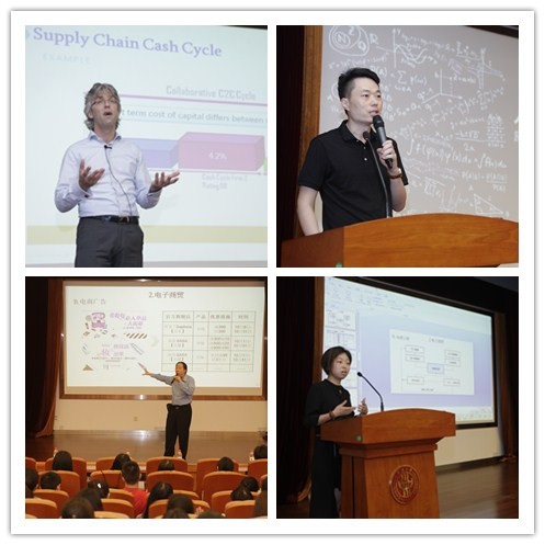第二位登台的是来自荷兰温德斯海姆应用科学大学的Michiel Steeman教授。Michiel的演讲主题是“供应链金融”。他首先为同学们讲述了供应链金融的定义以及供应链和金融二者的关系,并且以图表的形式对比了大公司和小公司在供应链金融中扮演的不同角色和作用。Michiel还以宝马、李维斯、英特尔、苹果等大公司为例来解释它们在供应链中是如何与供应商进行资金交易的。Michiel的演讲风趣幽默,激情四射,同学们都听得津津有味,不少同学举手表达自己的观点和疑问,现场气氛热烈,学术氛围浓厚。