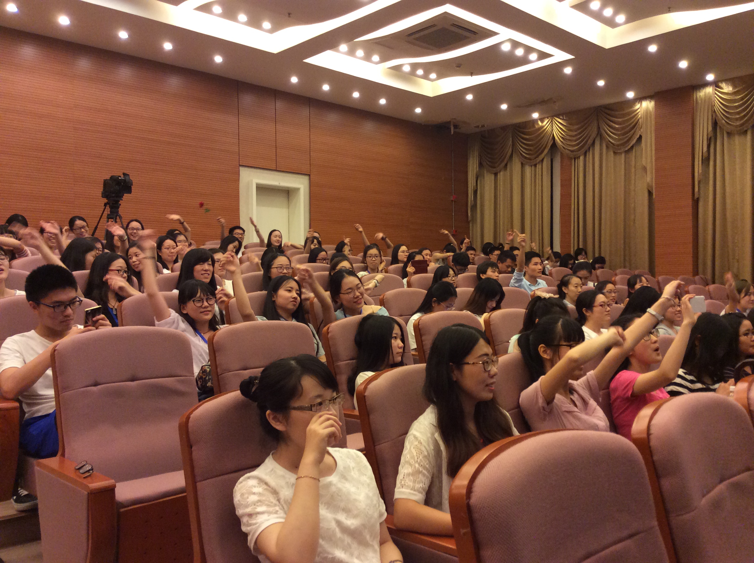的现状——学院学科体系完整,师资团队强大,国际交流机会众多,还具有完备的奖励机制,激发营员对加入东华大学的渴望。最后,姚教授向同学们展示了美食东华、时尚东华与创意东华,加深营员对于东华的认识与向往。